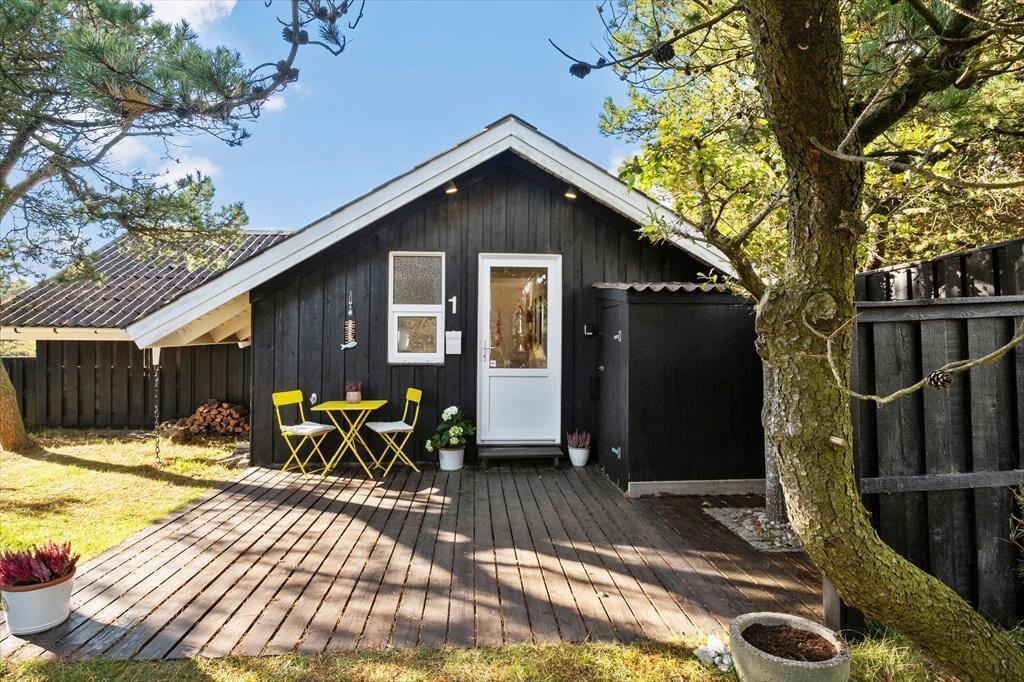 Udenfor kan du virkelig nyde den afslappede ferieatmosfære. Den overdækkede terrasse giver mulighed for at tilbringe tid udenfor, uanset vejret. Det er det perfekte sted at nyde morgenkaffen eller slappe af med en god bog, mens du lytter til lyden af fuglene i haven. Den store naturgrund omkring huset giver rig mulighed for både leg og afslapning, og med den korte afstand til stranden kan du hurtigt finde vej til den brede sandstrand for en forfriskende dukkert. Terrassen er også ideel til at tilberede middag på grillen, mens solen langsomt går ned, og den rolige stemning breder sig omkring dig.