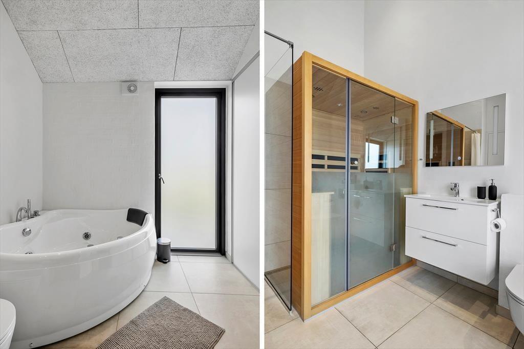 Det moderne sommerhus fra 2025 byder på lyse, åbne rum og en indretning, der skaber ro og rammerne for nærvær. Det centrale opholdsrum samler køkken og stue i ét, så du kan stå ved gryderne og stadig være en del af samtalen. Store vinduespartier lukker lyset og naturen ind og skaber en følelse af luft og frihed. Når dagen går på hæld, kan du forkæle dig selv med en tur i det varme spabad eller mærke varmen brede sig i kroppen i husets sauna. Det er den slags komfort, der gør det let at slappe helt af og finde ferieformen. Huset er rummeligt og velegnet til både store og små familier, og her er tænkt på, at alle skal føle sig hjemme.