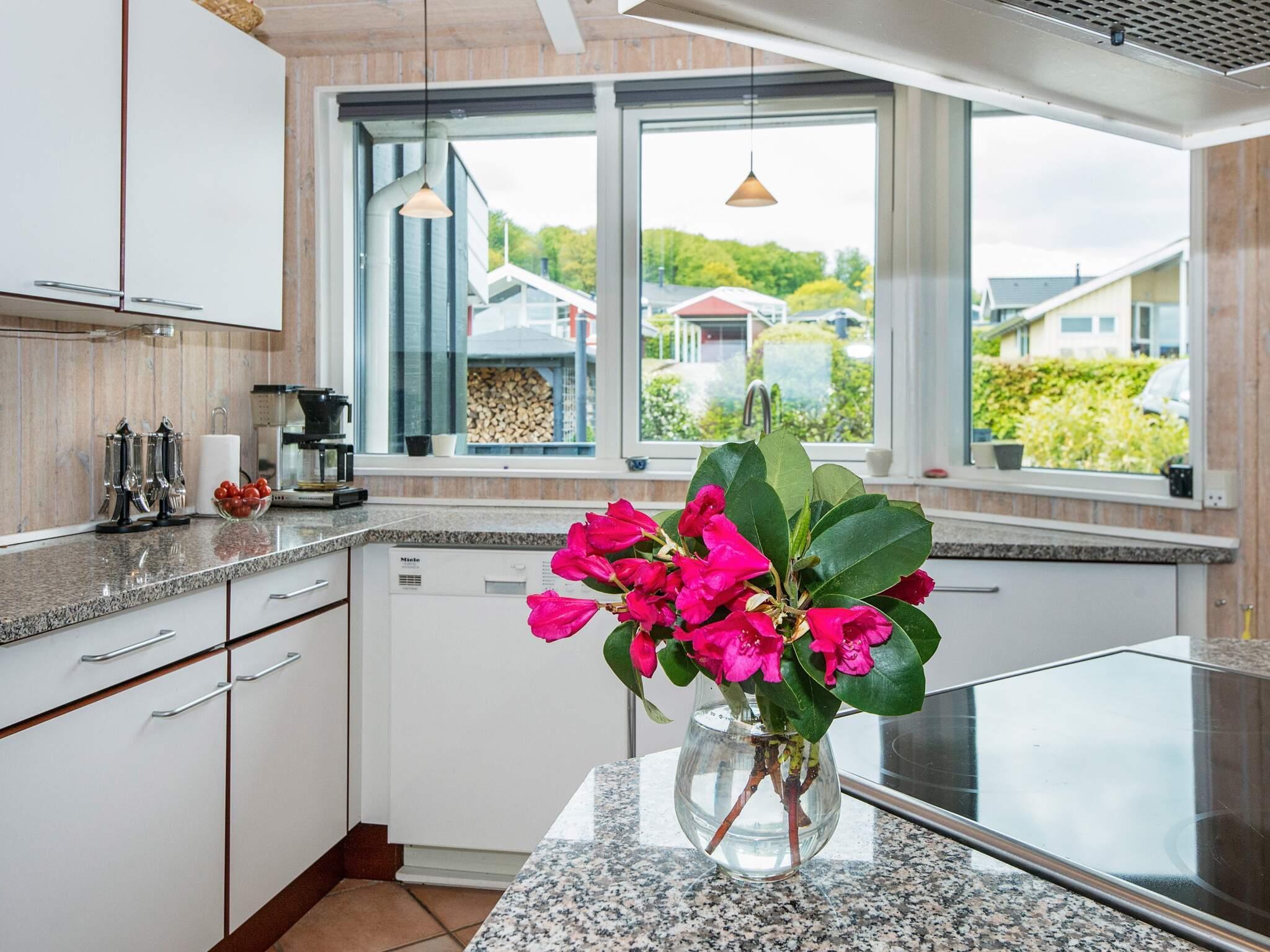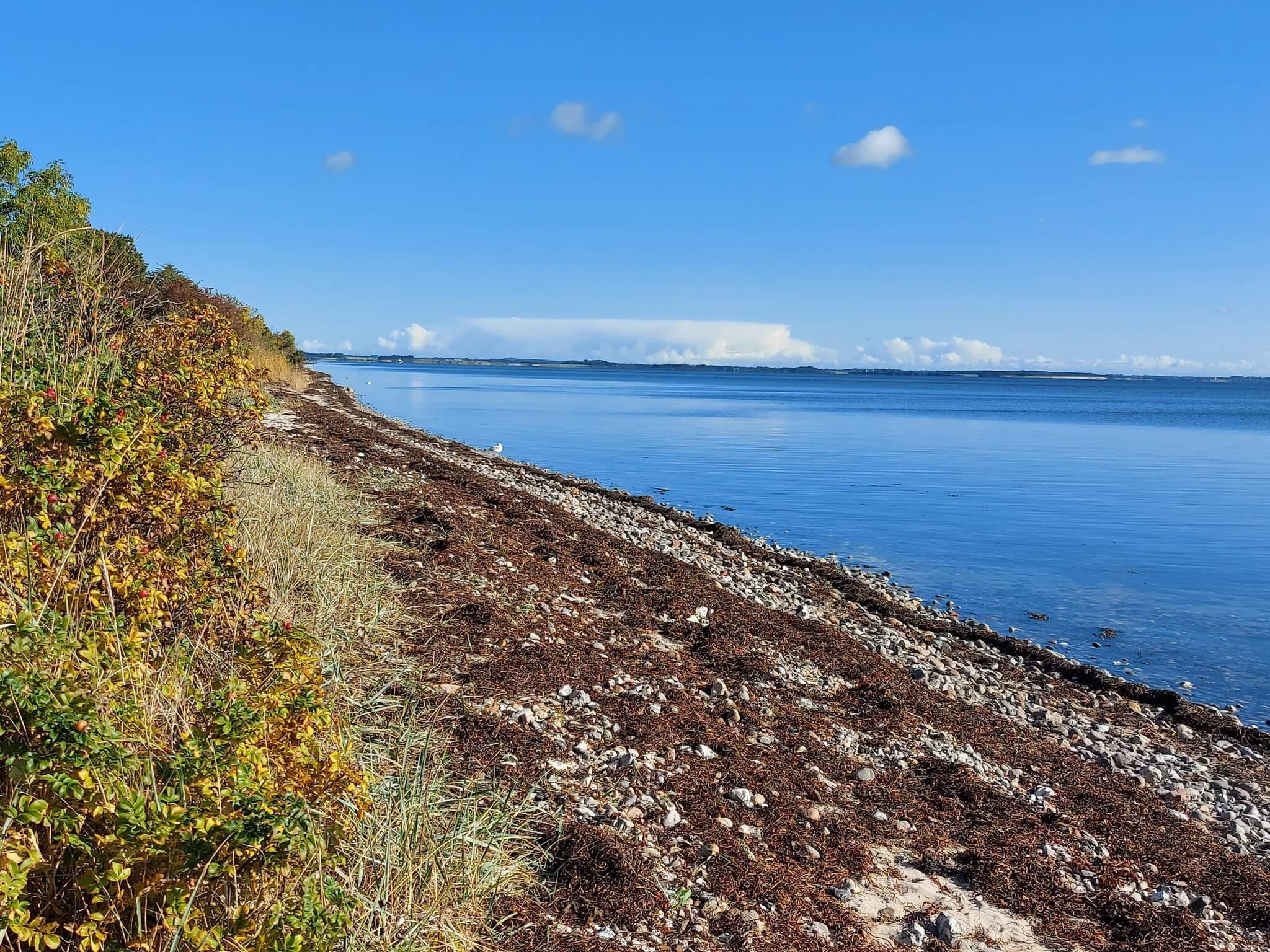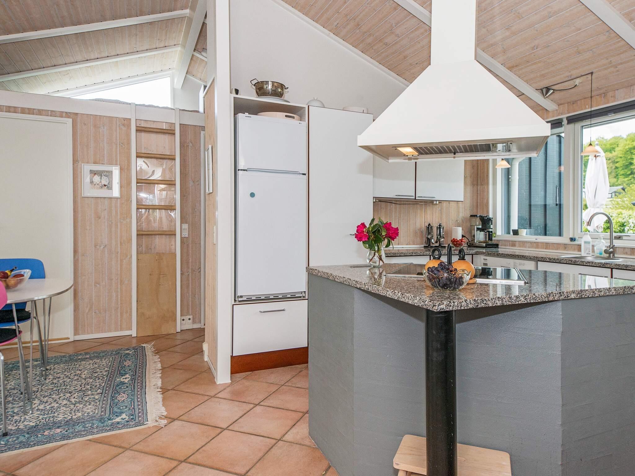 Sommerhusets hjerte er det store stue og køkkenområde med loft til kip og store vinduespartier mod de store terrasseområder og vandet. Sammen med de store vinduer og lyse vægge vil huset føles lyst overalt. Det veludstyrede hus har bl.a. opvaskemaskine og varmepumpe. Husets ejer har sørget for en hyggelig indretning af huset med moderne udestue og et opholdsrum, som er hævet med et par trappetrin. Overalt herfra har I den skønneste udsigt til havet.