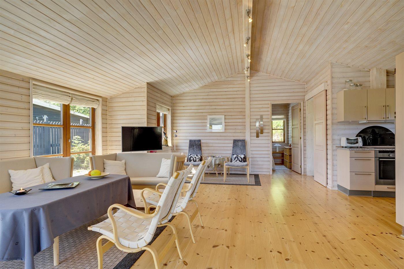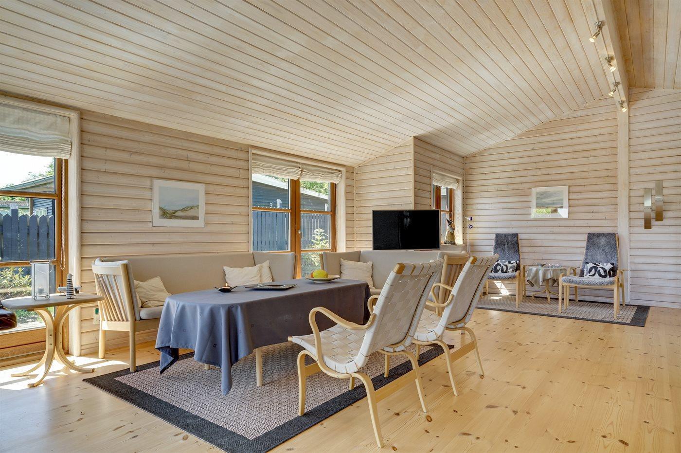 Sommerhuset egner sig til 6 personer. Ferieboligen er på 100 m² og er bygget i 2002. Det er tilladt at medbringe 1 husdyr. Ferieboligen er udstyret med 2 energibesparende varmepumper, hvoraf den ene befinder sig i annekset. Ferieboligen har kombineret vaskemaskine og tørretumbler. Frysekapacitet på 10 liter. Der er desuden brændeovn.