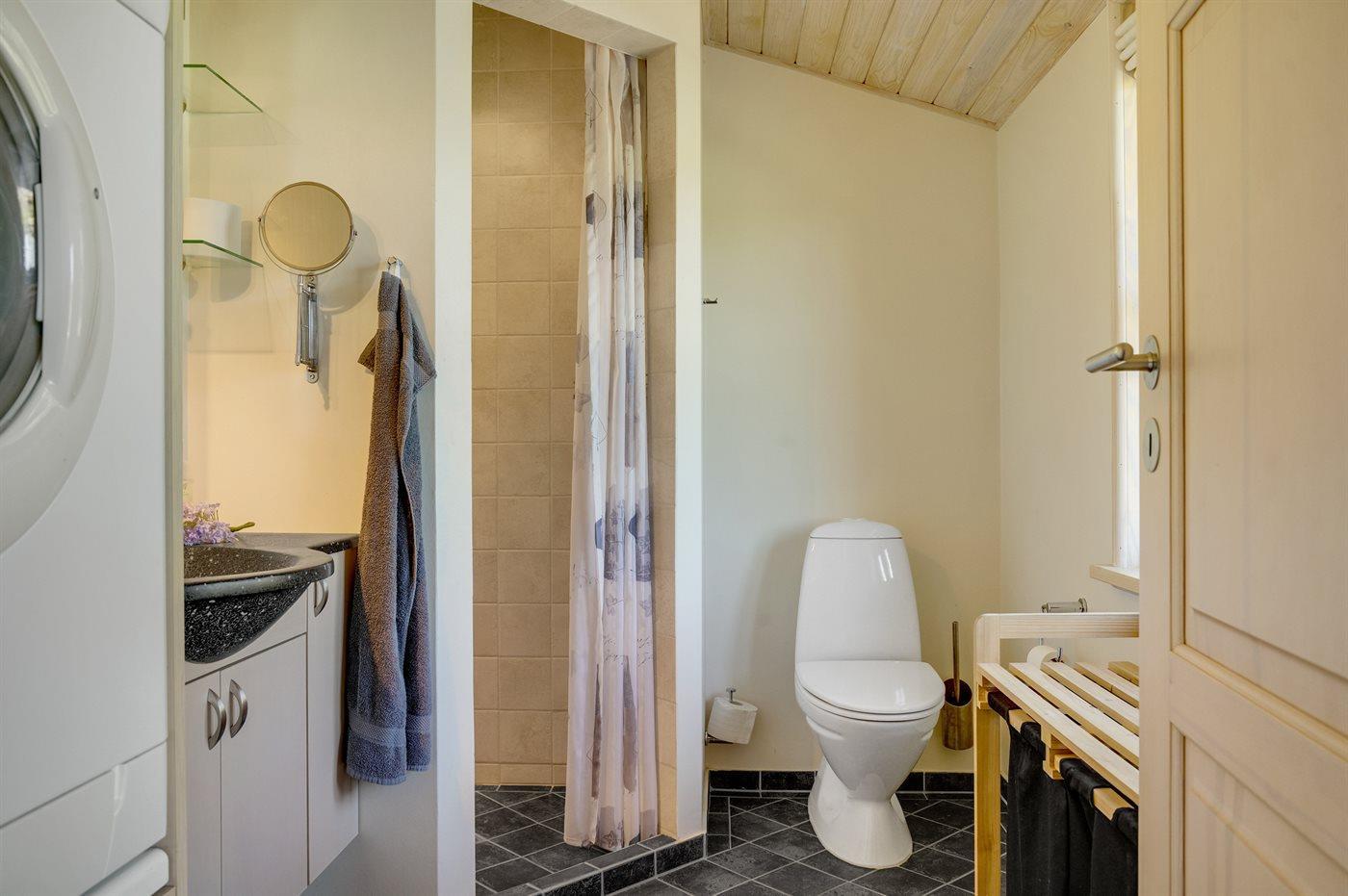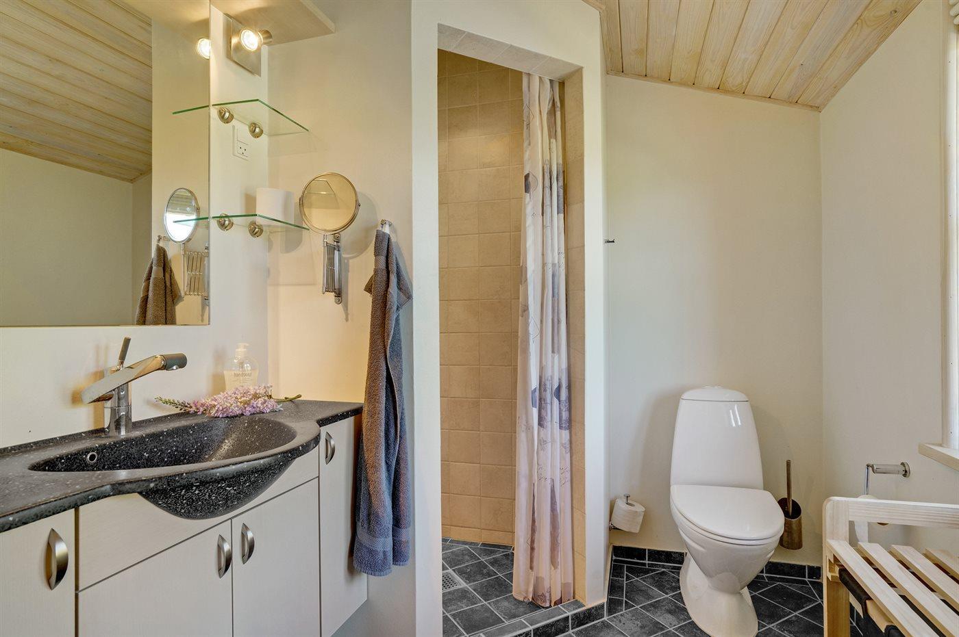 Der er 2 badeværelser med bruseniche og 2 toiletter. Der er gulvvarme på 1 badeværelse.