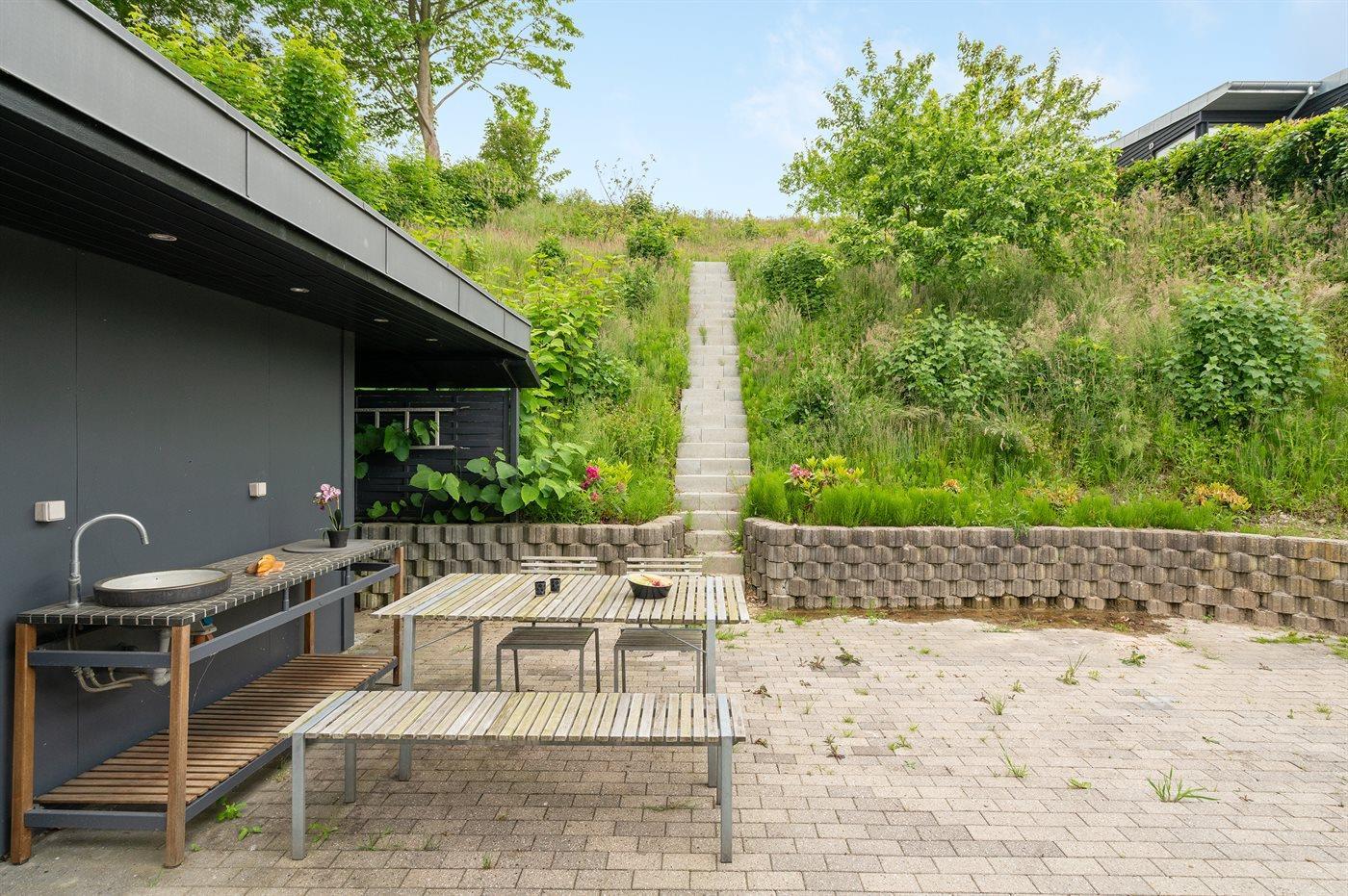 Flot sommerhus i Grønninghoved med panoramaudsigt over havet og moderne faciliteter.