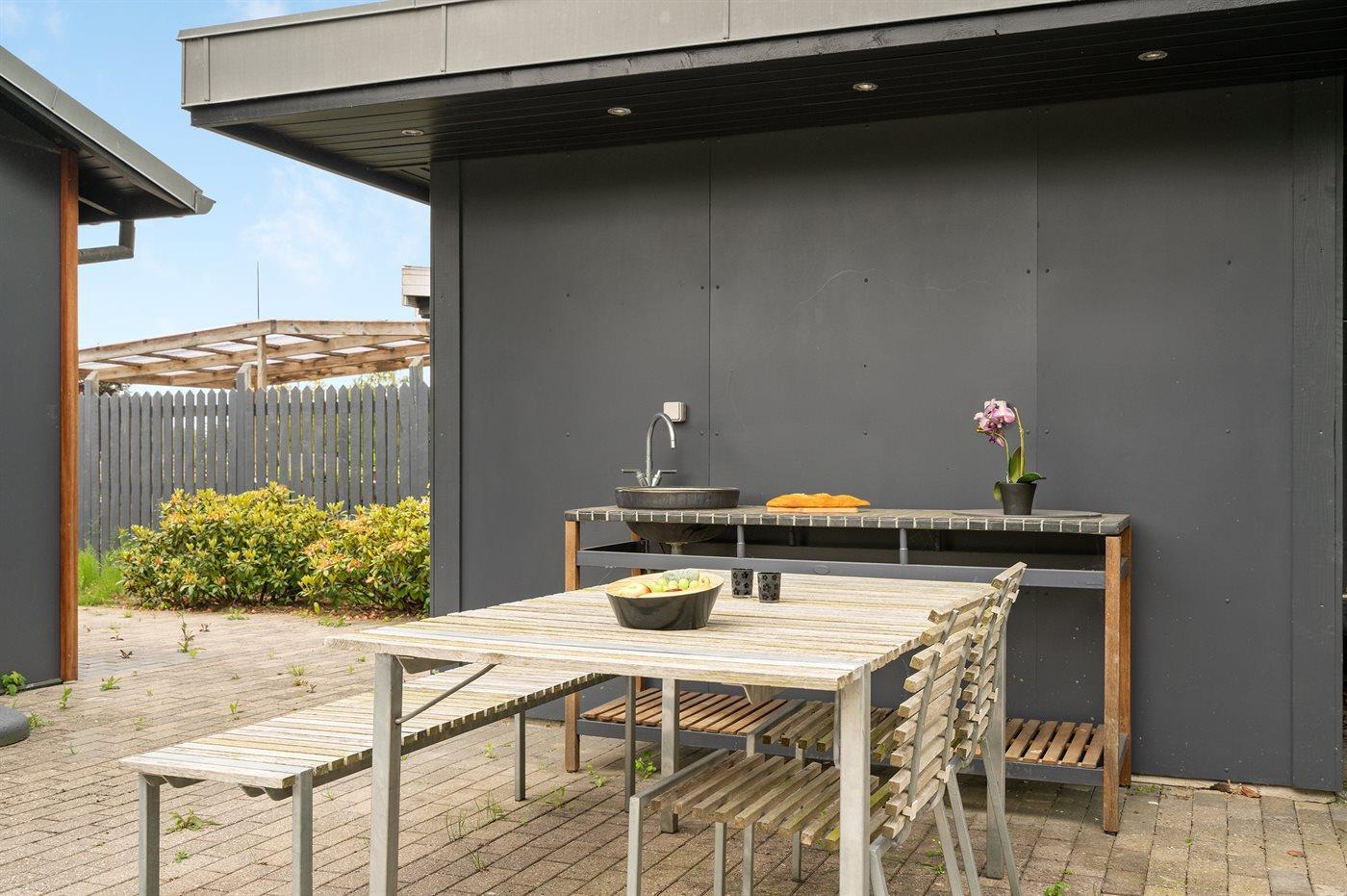 Ferieboligen er beliggende på en 1076 m² stor naturgrund. Der er 93 m til havet. Nærmeste forretning er beliggende i en afstand af 300 m. Til ferieboligen hører 100 m² terrasseareal. Grill til rådighed. Parkering ved ferieboligen.