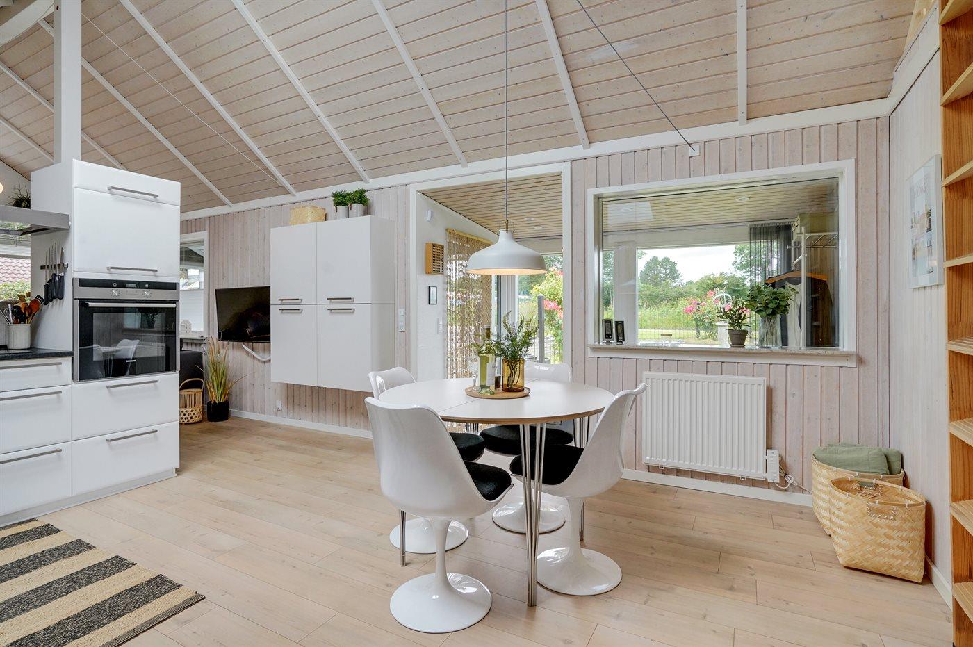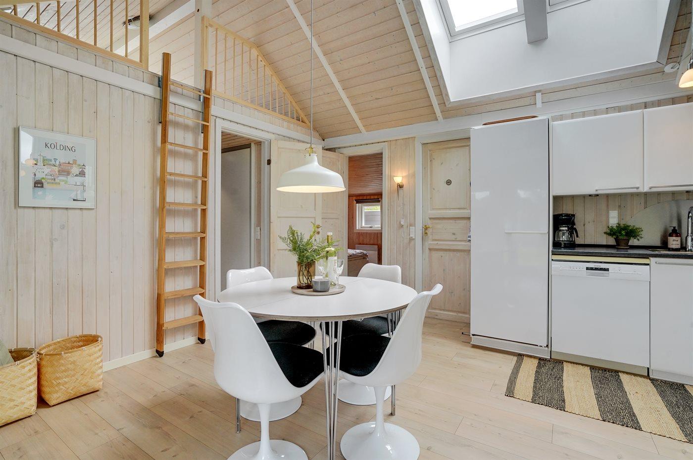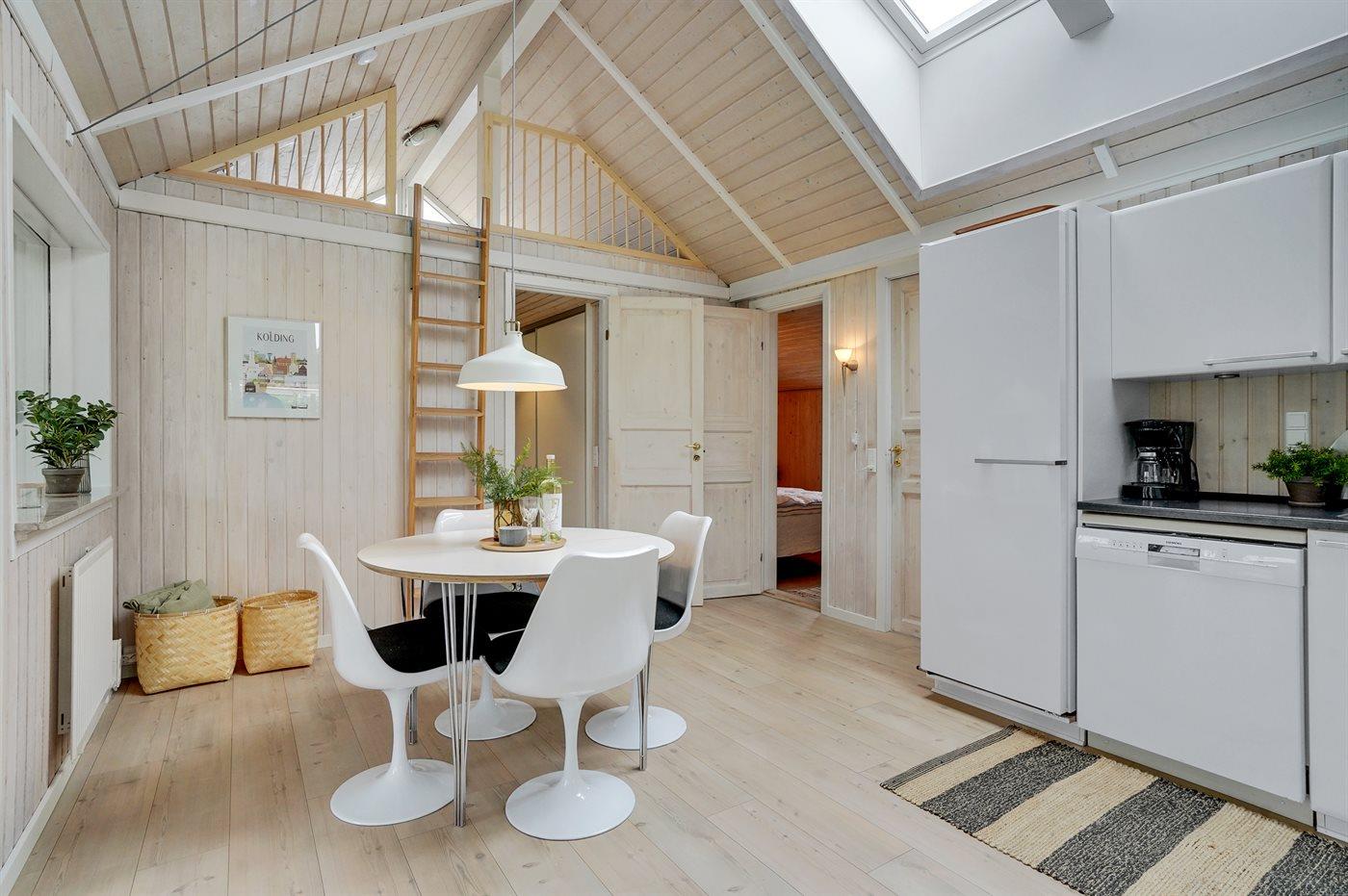 Køkkenet er udstyret med 1 køleskab. Der er 4 induktionskogeplader, varmluftovn, mikrobølgeovn samt opvaskemaskine.