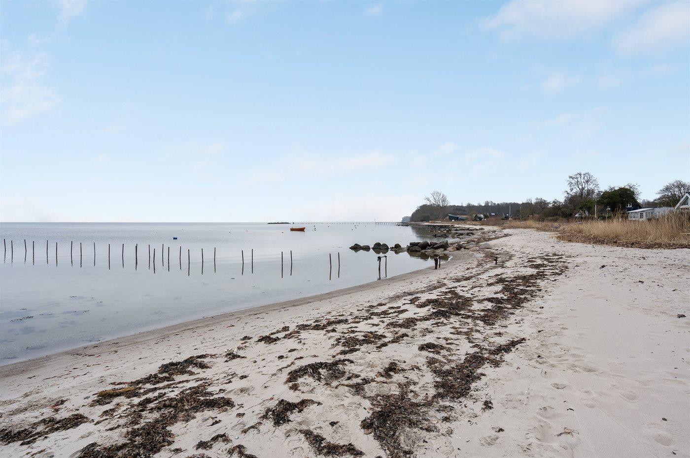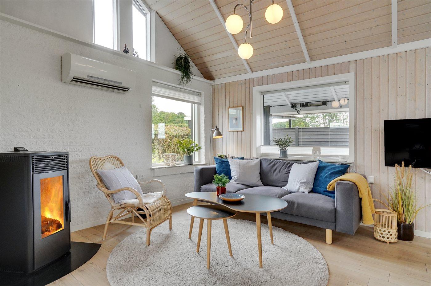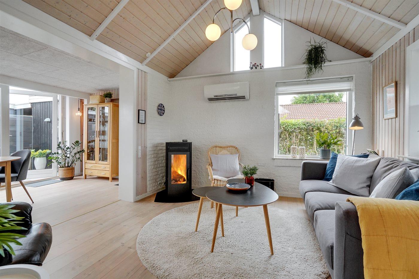 Kun 75 m fra en dejlig og børnevenlig badestrand ligger dette hyggelige sommerhus, som er nænsomt renoveret i 2020.