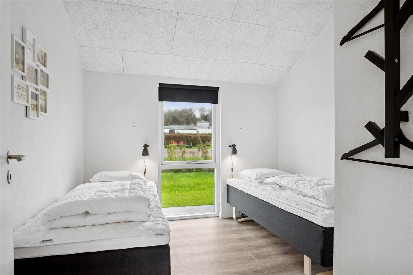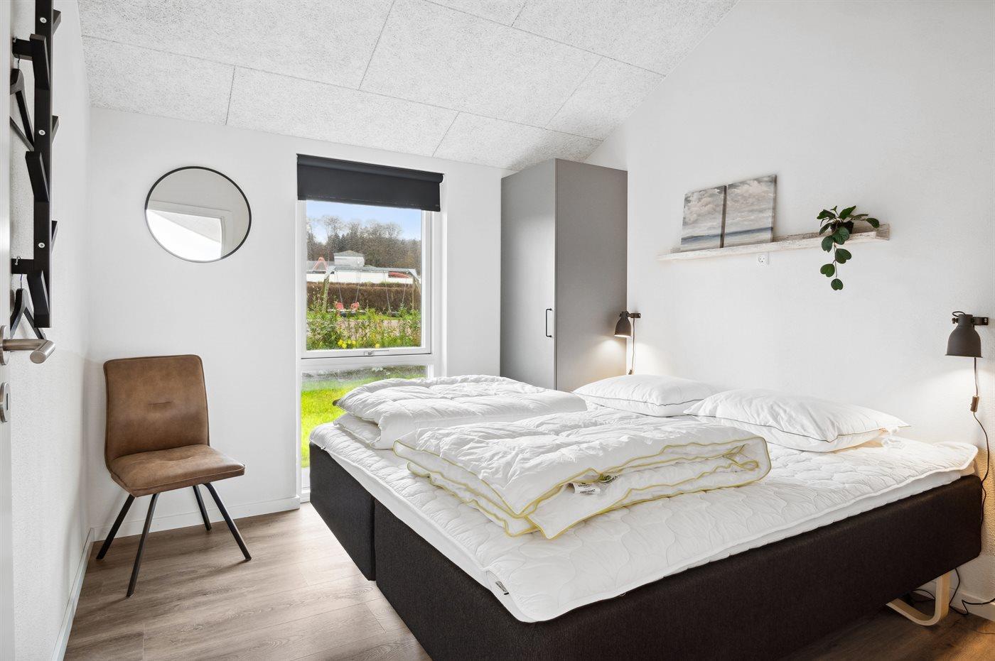 Der er i alt 5 soveværelser. Sovepladserne fordeler sig på: 6 sovepladser i dobbeltsenge. 4 sovepladser i enkeltsenge. Derudover er der 1 stk. barneseng.