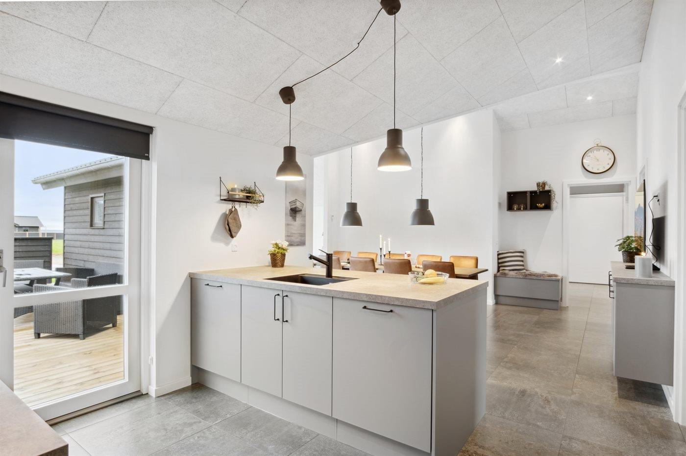 Køkkenet er udstyret med 1 køleskab.. Der er 4 induktionskogeplader, varmluftovn, mikrobølgeovn samt opvaskemaskine. Der findes desuden et ekstra køleskab i forgangen.