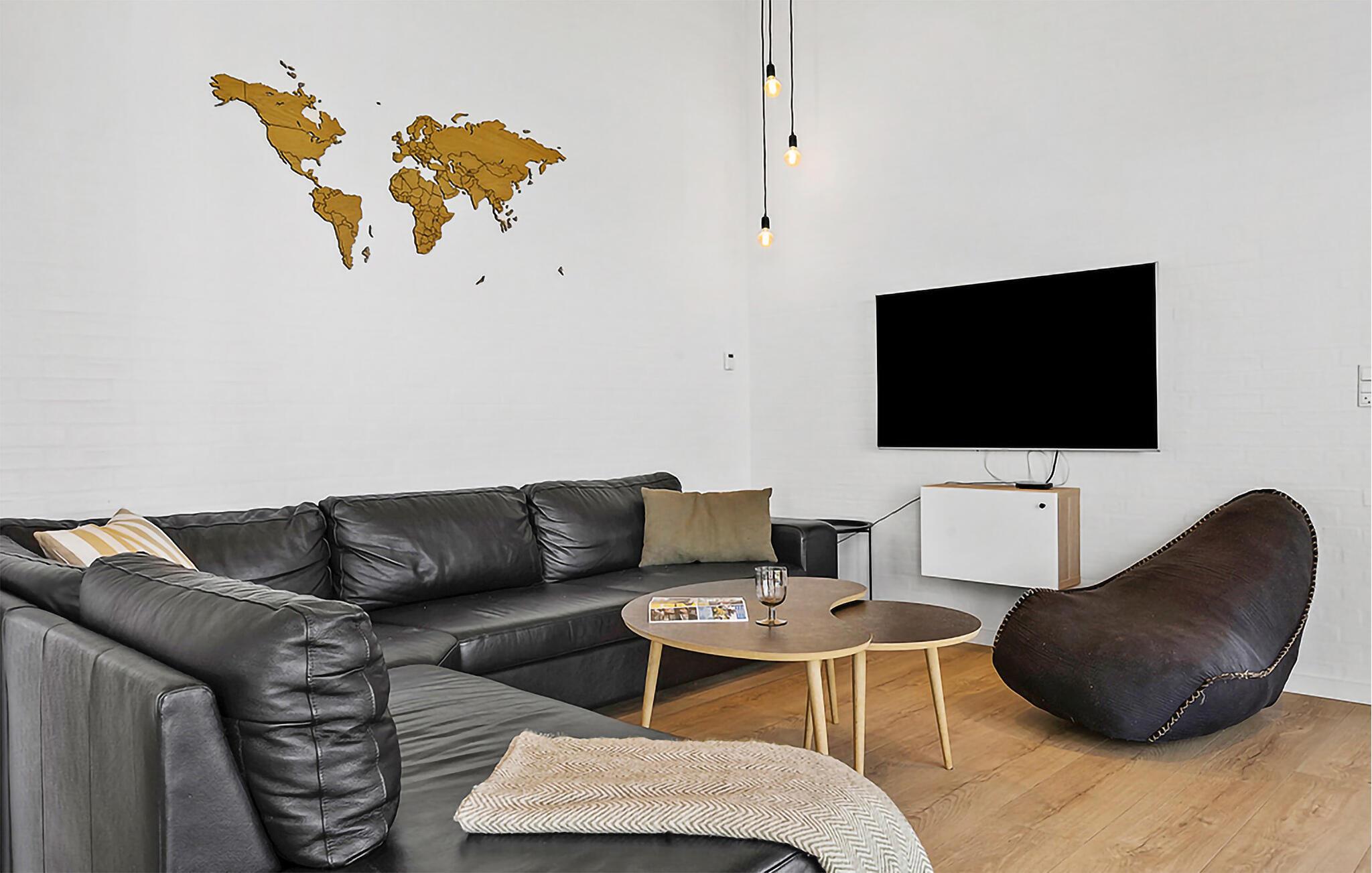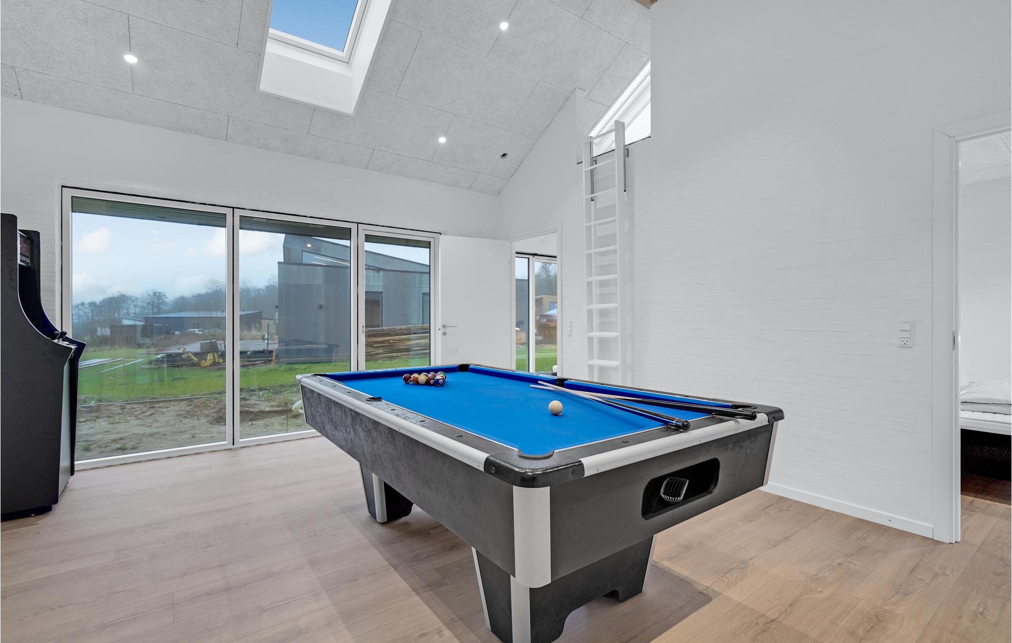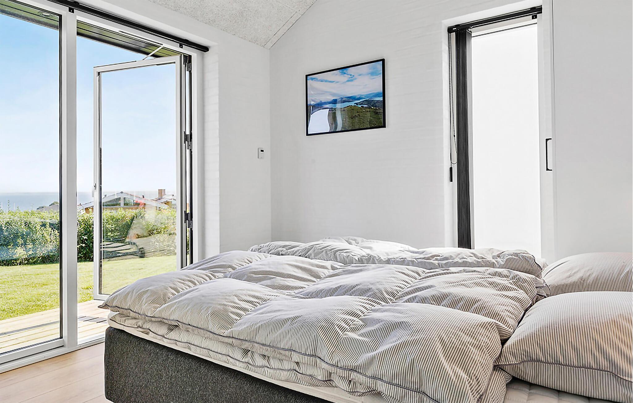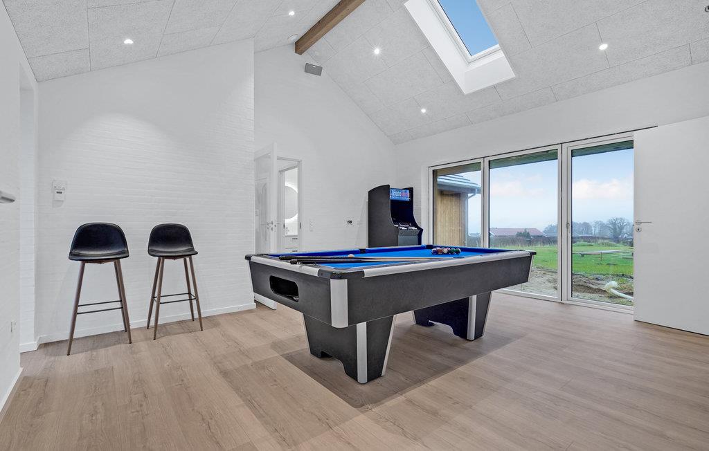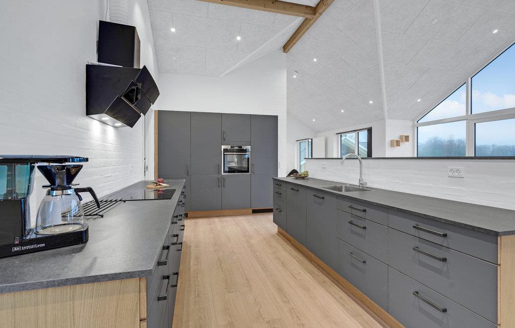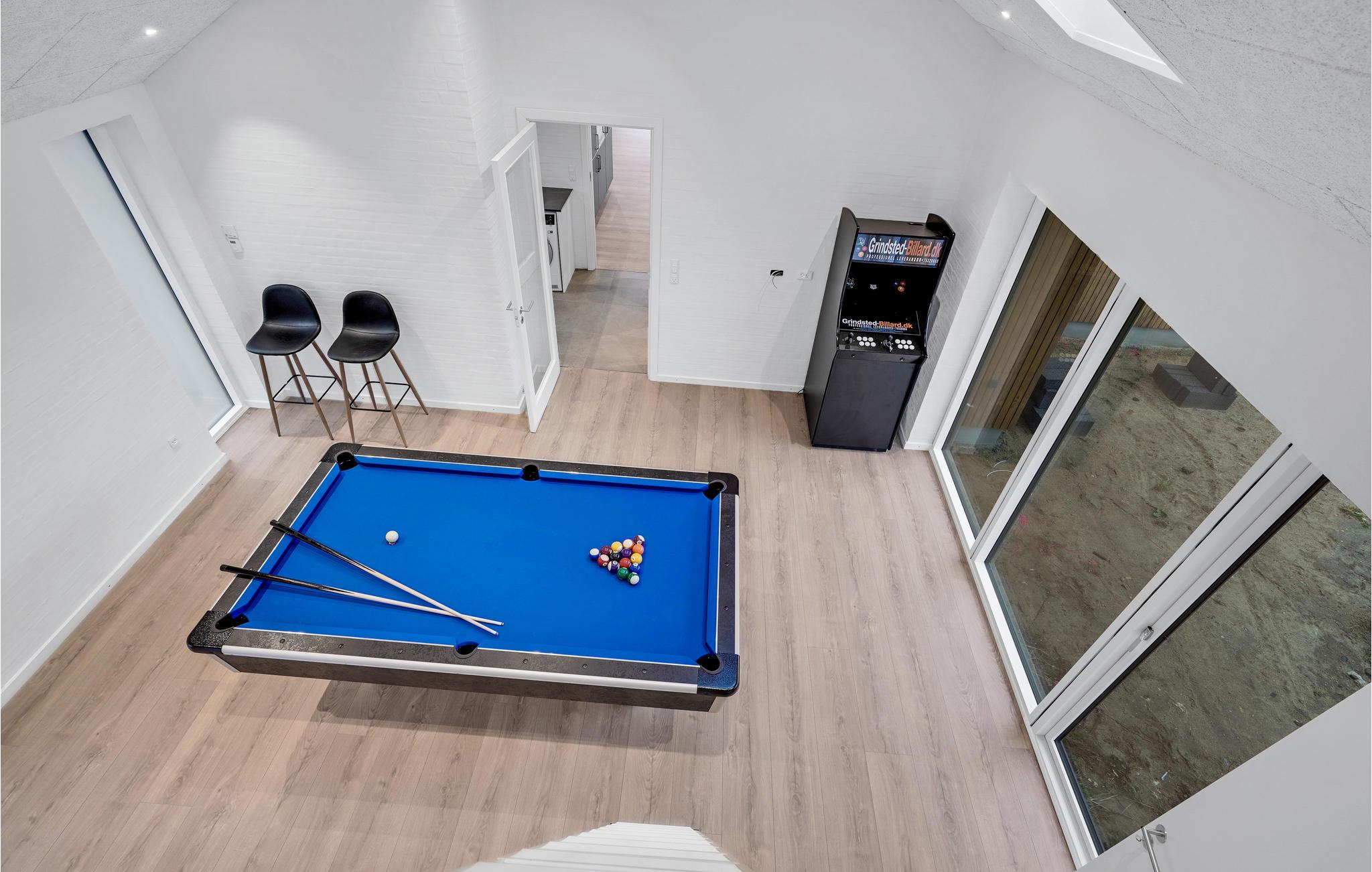 Dette feriehus har en moderne atmosfære og fremstår flot med gode, lyst indrettede rum, fine detaljer i træ og møbler af høj kvalitet. De høje lofter og store vinduespartier sørger for, at der kommer masser af lys ind indenfor. Den åbne opholdsstue med spiseplads og stort køkken garanterer hyggelige stunder med familie eller venner.