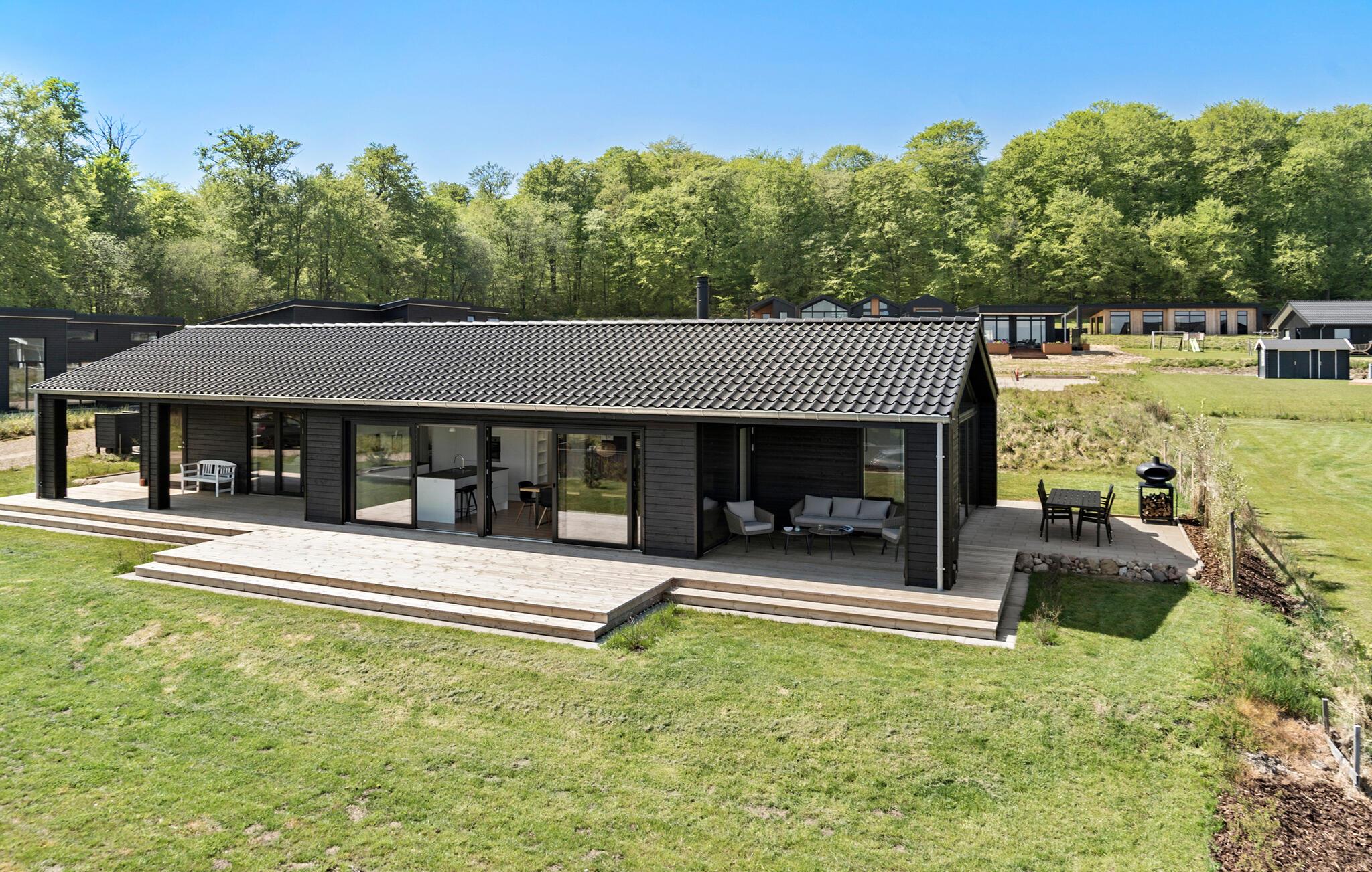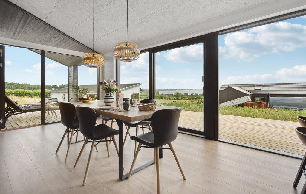 Moderne feriehus i Grønninghoved med havudsigt, tæt på børnevenlig sandstrand og dejligt udendørsområde.