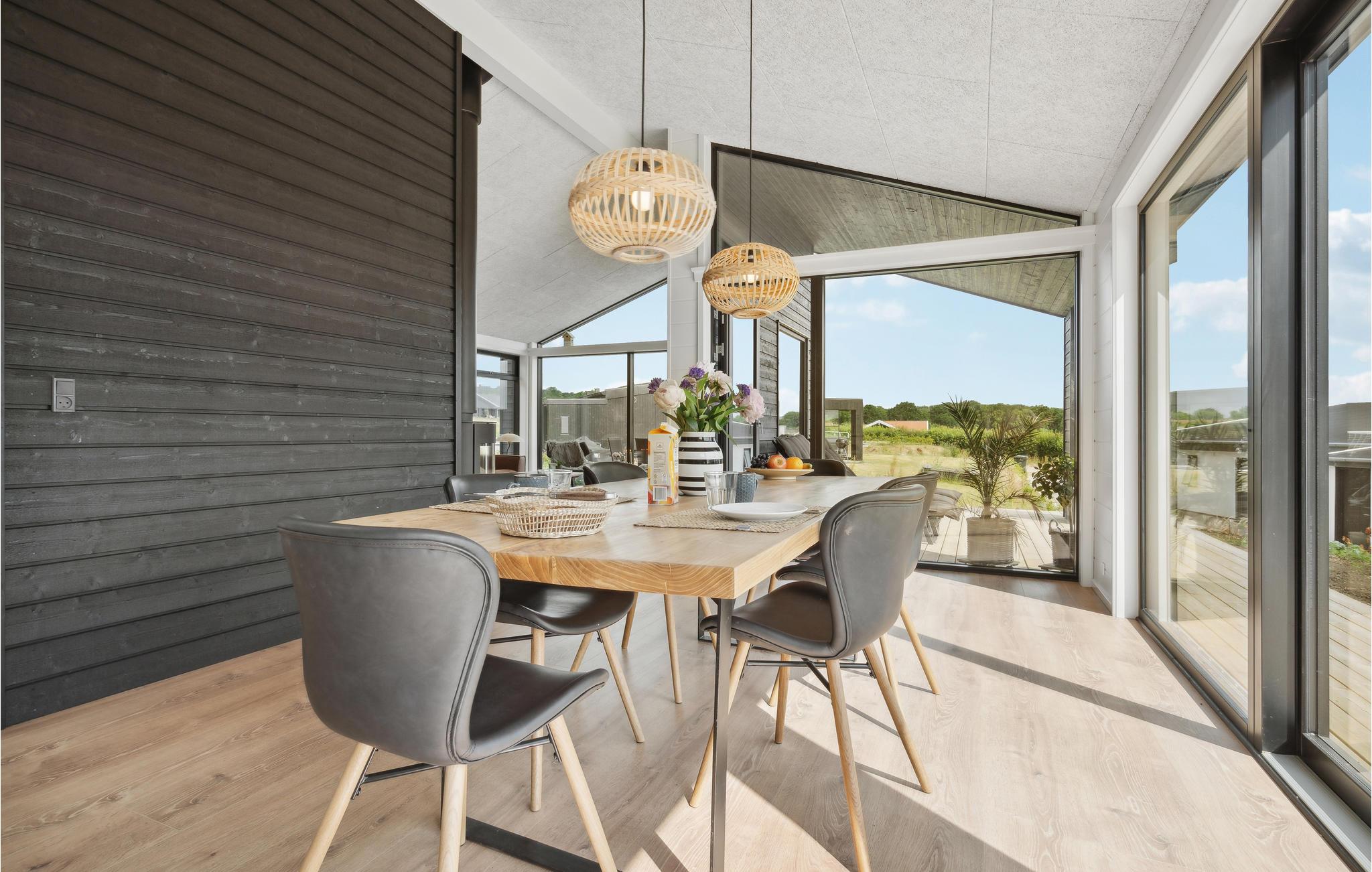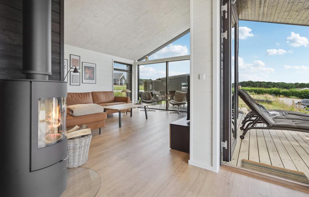 Dette rummelige feriehus byder jer velkommen i Grønninghoved tæt på sandstranden. Lyset strømmer ind gennem de store gulv-til-loft-vinduer og skaber en beroligende atmosfære med maksimal udsigt, og den brune hjørnesofa tilføjer et strejf af varme. Der står hyggelig fælles madlavning på programmet og dejlige måltider ved spisebordet, som også er ideelt til en sjov spilleaften. Efter en lang dag på stranden eller en udflugt kan I tænde op i brændeovnen om aftenen. Tilbring vidunderlig familietid i haven og på den dejlige terrasse, hvor I kan sole jer på liggestolene og se jeres børn hoppe på trampolinen eller spille fodbold. Den børnevenlige sandstrand kan hurtigt nås til fods, og når I kommer tilbage, kan I skylle sandet af under den udendørs bruser.