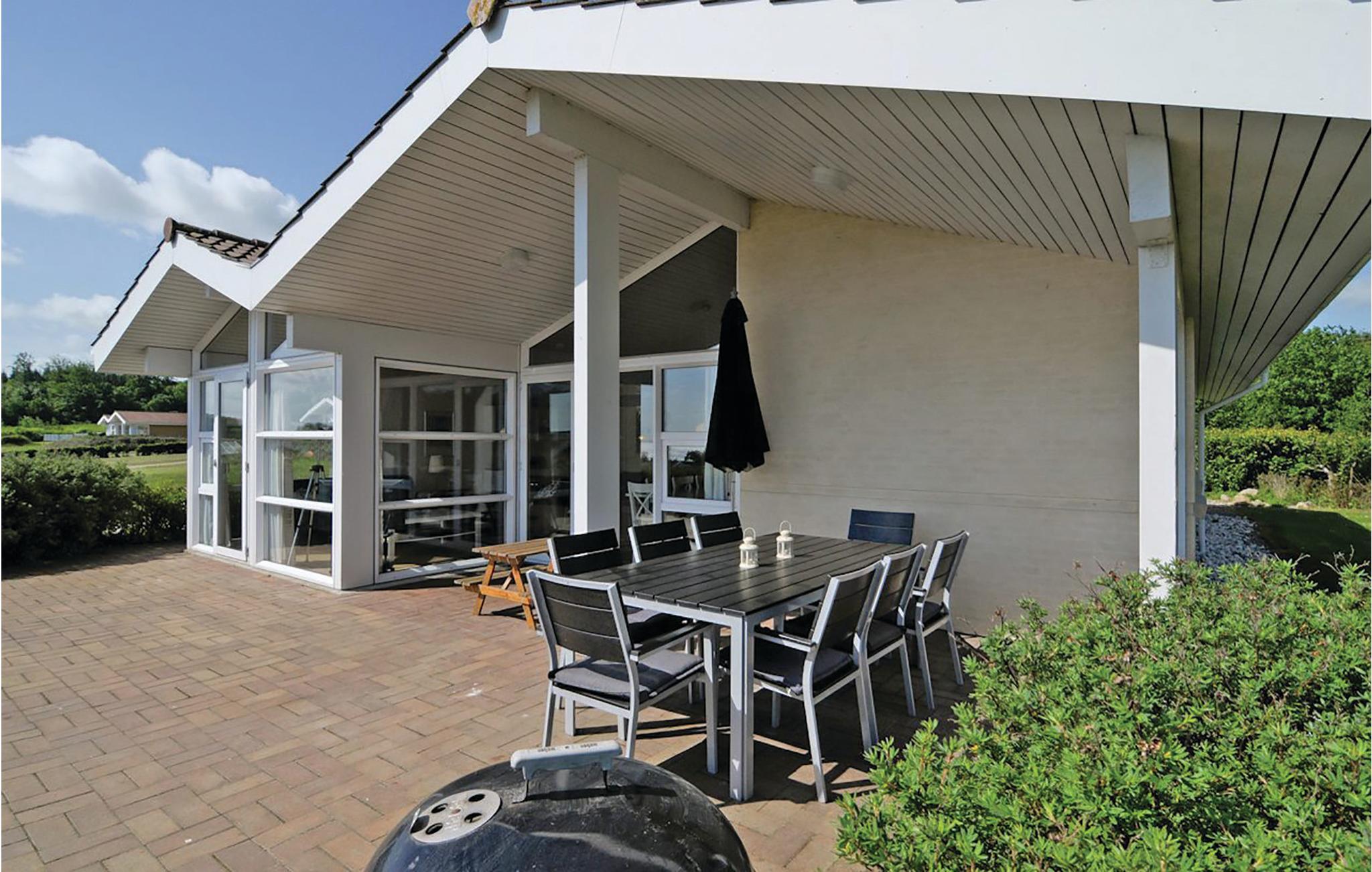 Dette flotte feriehus ligger i et dejligt feriehusområde på en anlagt havegrund i naturskønne omgivelser, for foden af den historiske Skamlingsbanken. Huset er smagfuldt indrettet i et lyst, skandinavisk look, det er udstyret med mange faciliteter. Køkken/alrummet har en god placering i huset med udsigt til Lillebælt fra sofagruppen og spisebordet, de tre soveværelser er fordelt med to værelser i den ene ende af huset mens det sidste værelse ligger i modsatte ende med adgang fra stuen. Fra den dejlige terrasse kan I ligeledes nyde udsigten tlil havet. Haven er ideel til leg og udeliv.