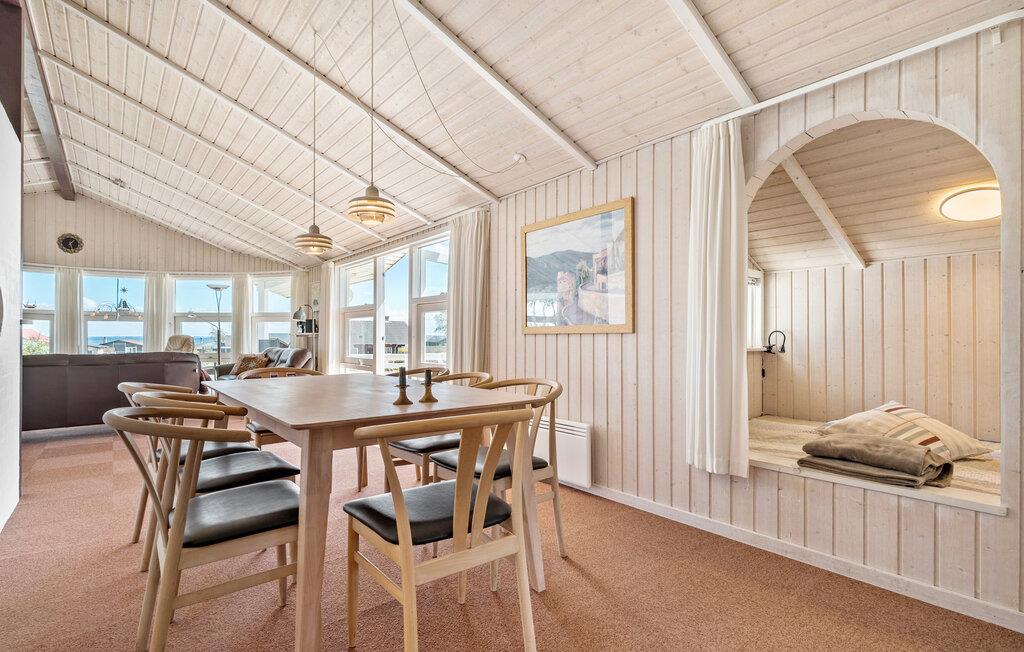 Der er ikke langt til skønne Grønninghoved Strand fra dette komfortable sommerhus. Her kan I nyde dagens rolige stunder i den rummelige opholdsstue med store vinduer og give jer god tid til fælles madlavningsprojekter i køkkenet. Dæk op til dagens måltider ved spisebordet og hyg jer senere med brætspil, når aftenen falder på. Fra sofaen kan I nyde over haven og længere ude det skinnende blå vand. Børnene vil sikkert kaste sig over gyngerne og hygge sig med løb og leg i haven. Rund dagene af med en god film i fjernsynet og ild i brændeovnen, hvis det er blevet lidt køligt. Skal I gøre noget godt for jer selv efter dagens program, er det herligt med sauna og spabad.