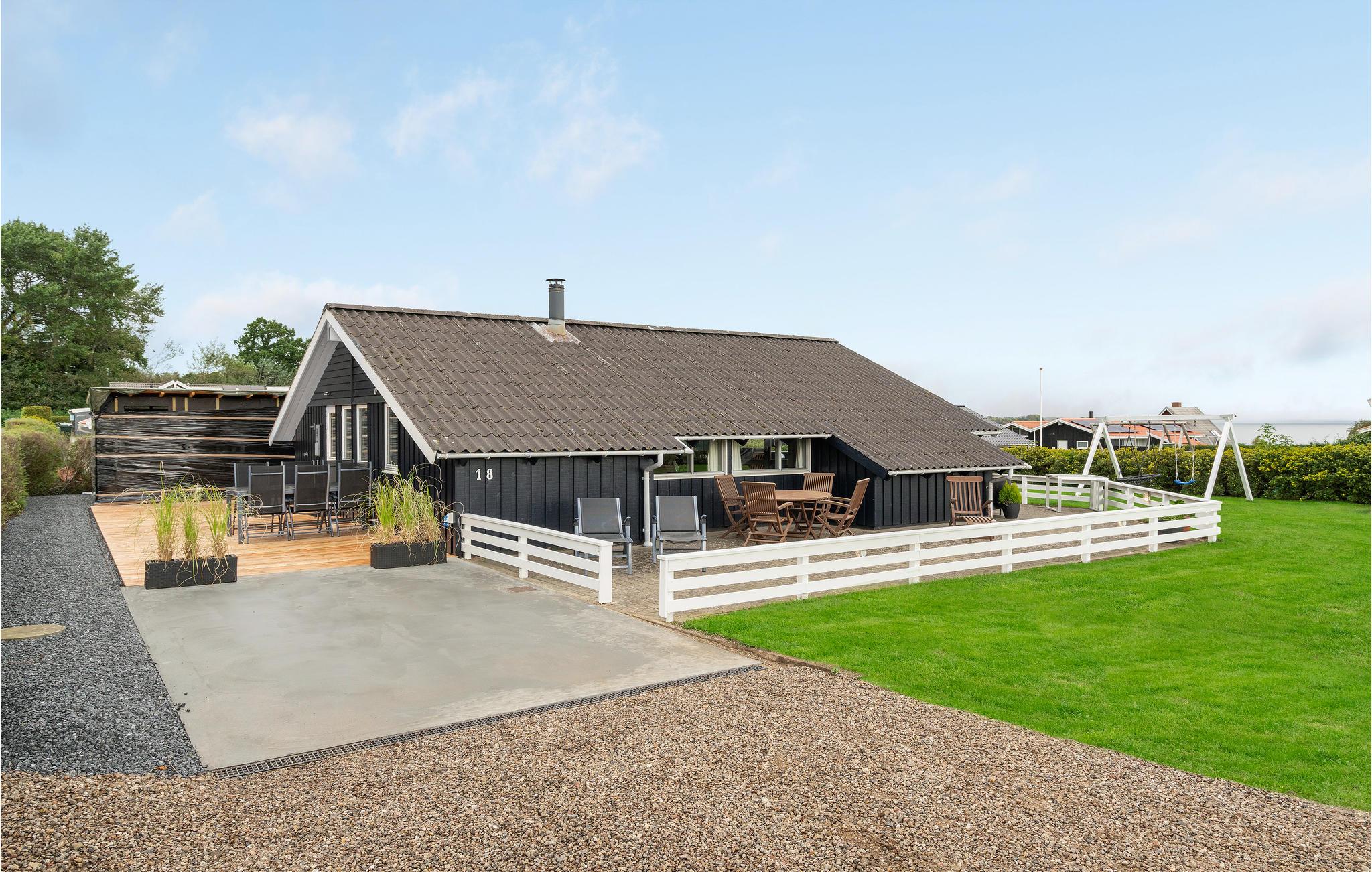 Hyggeligt sommerhus ved Grønninghoved Strand med havudsigt, sauna og spabad tæt på børnevenlig strand.