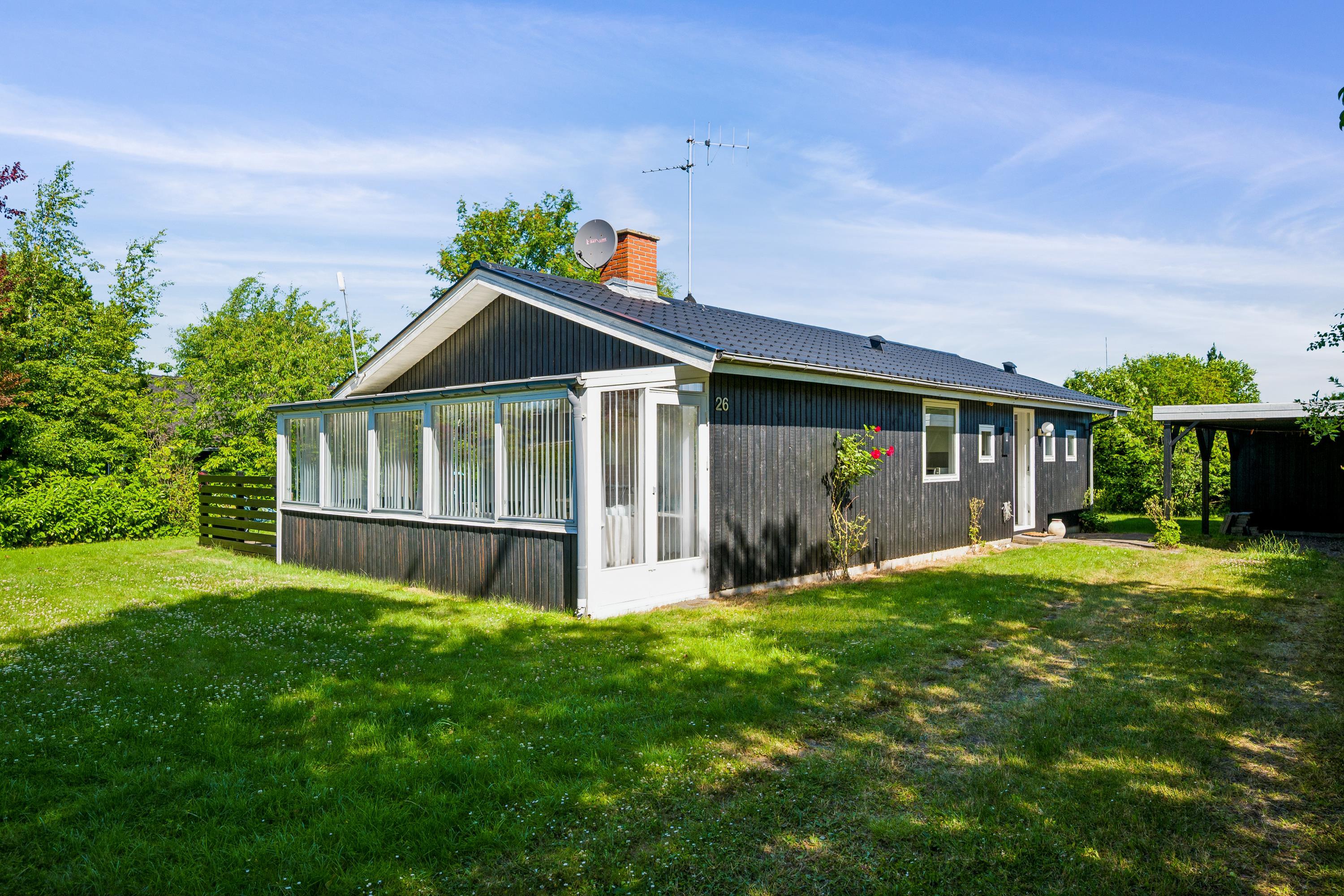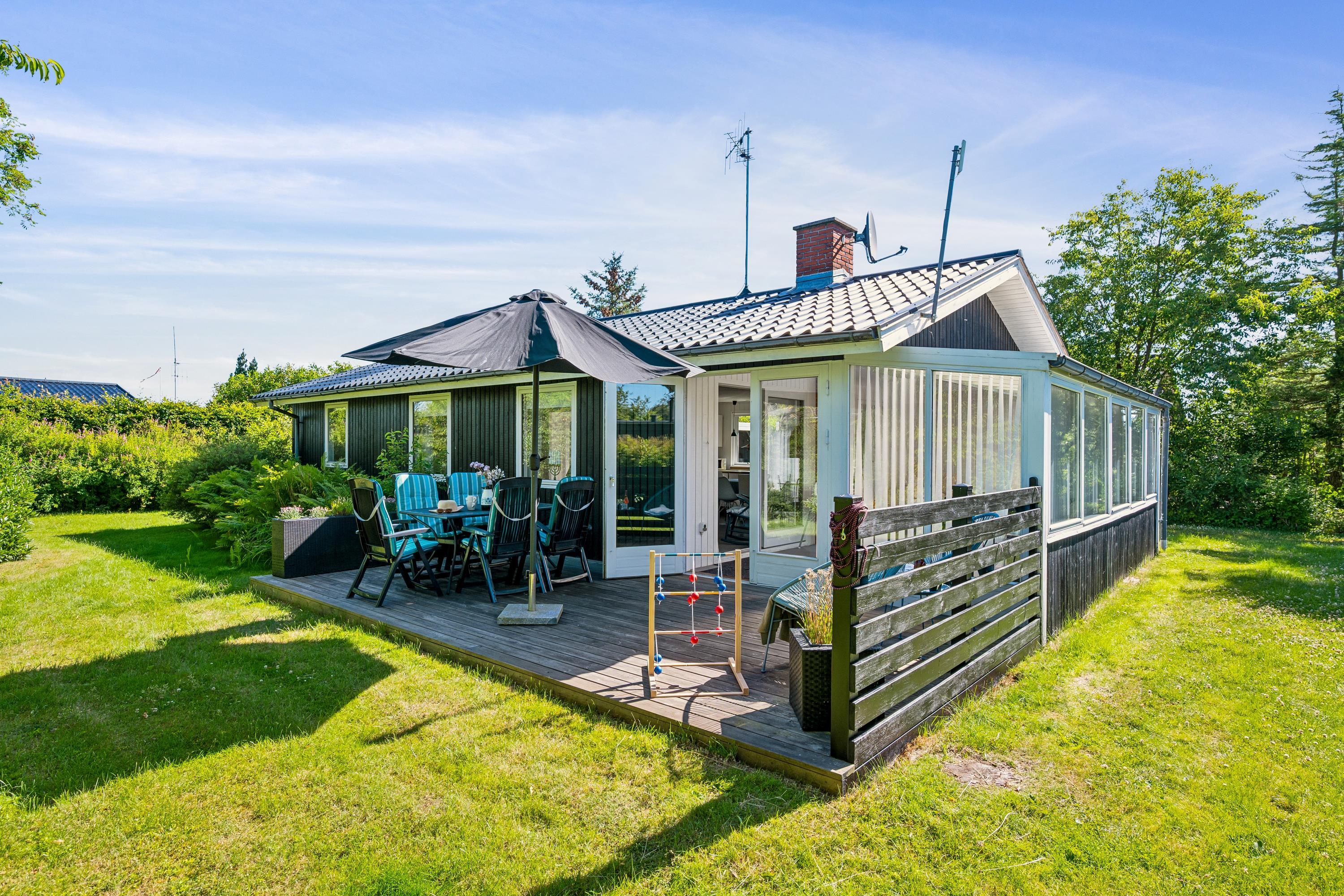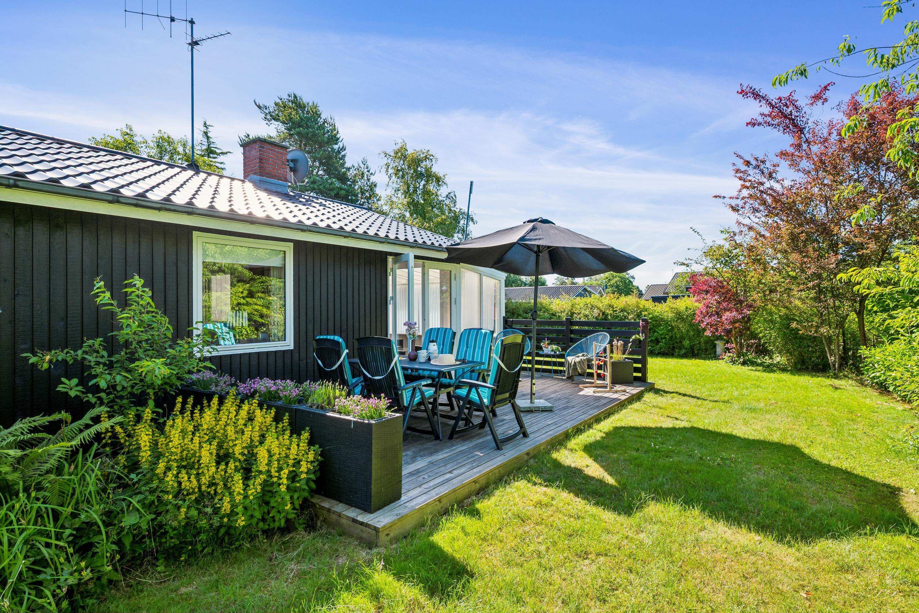Hyggeligt sommerhus nær Grenaa Strand med brændeovn, udestue og stor terrasse for afslapning og leg.