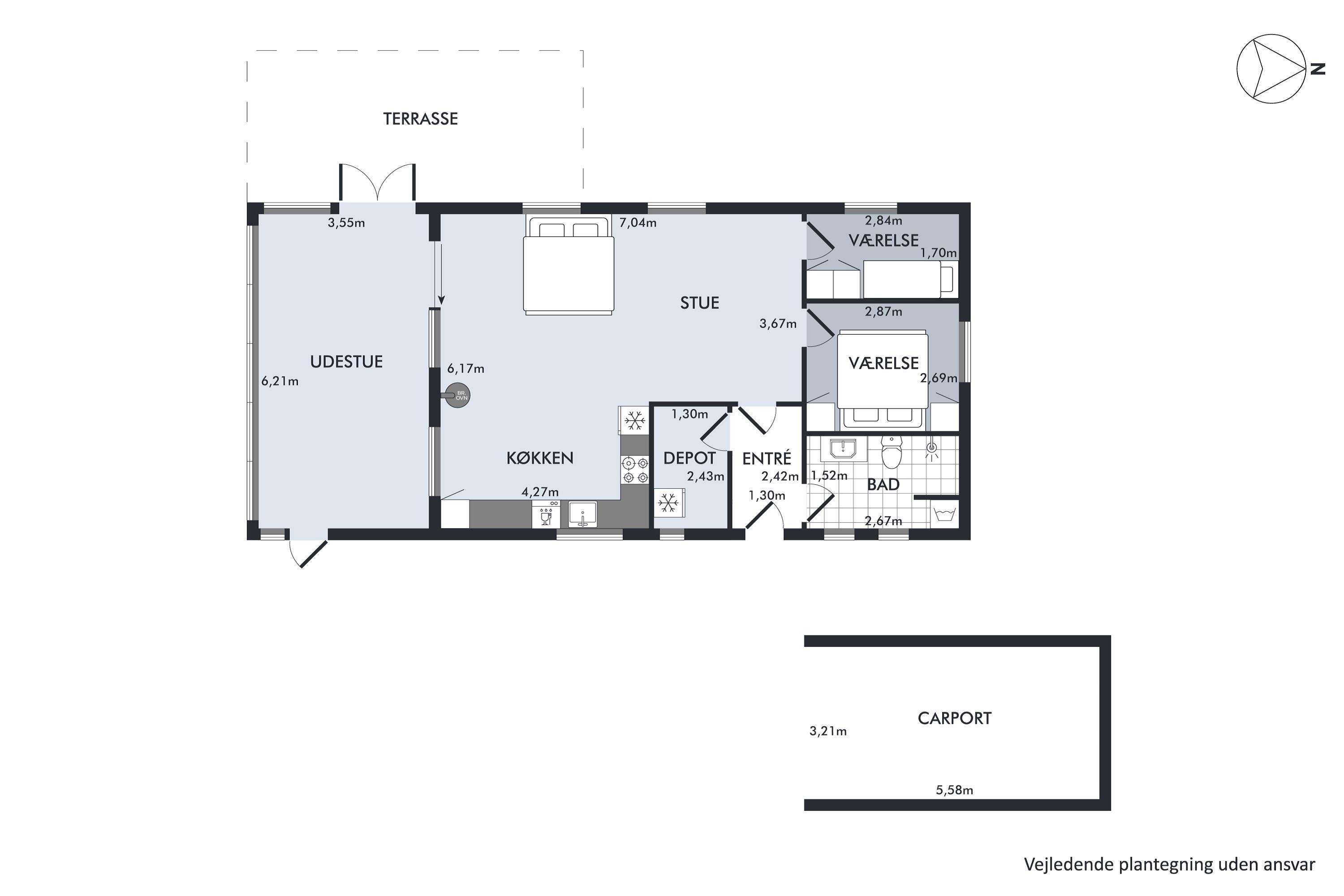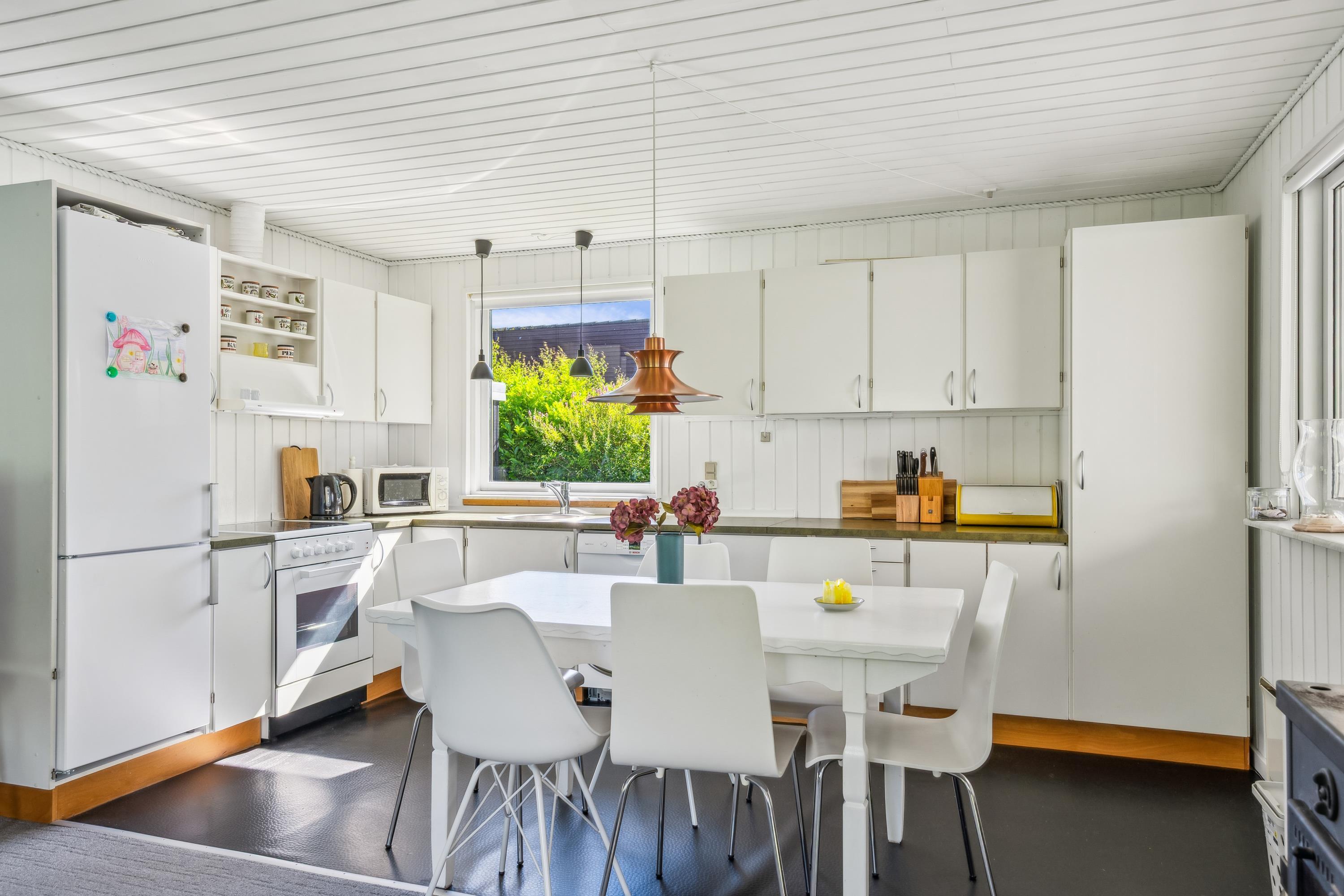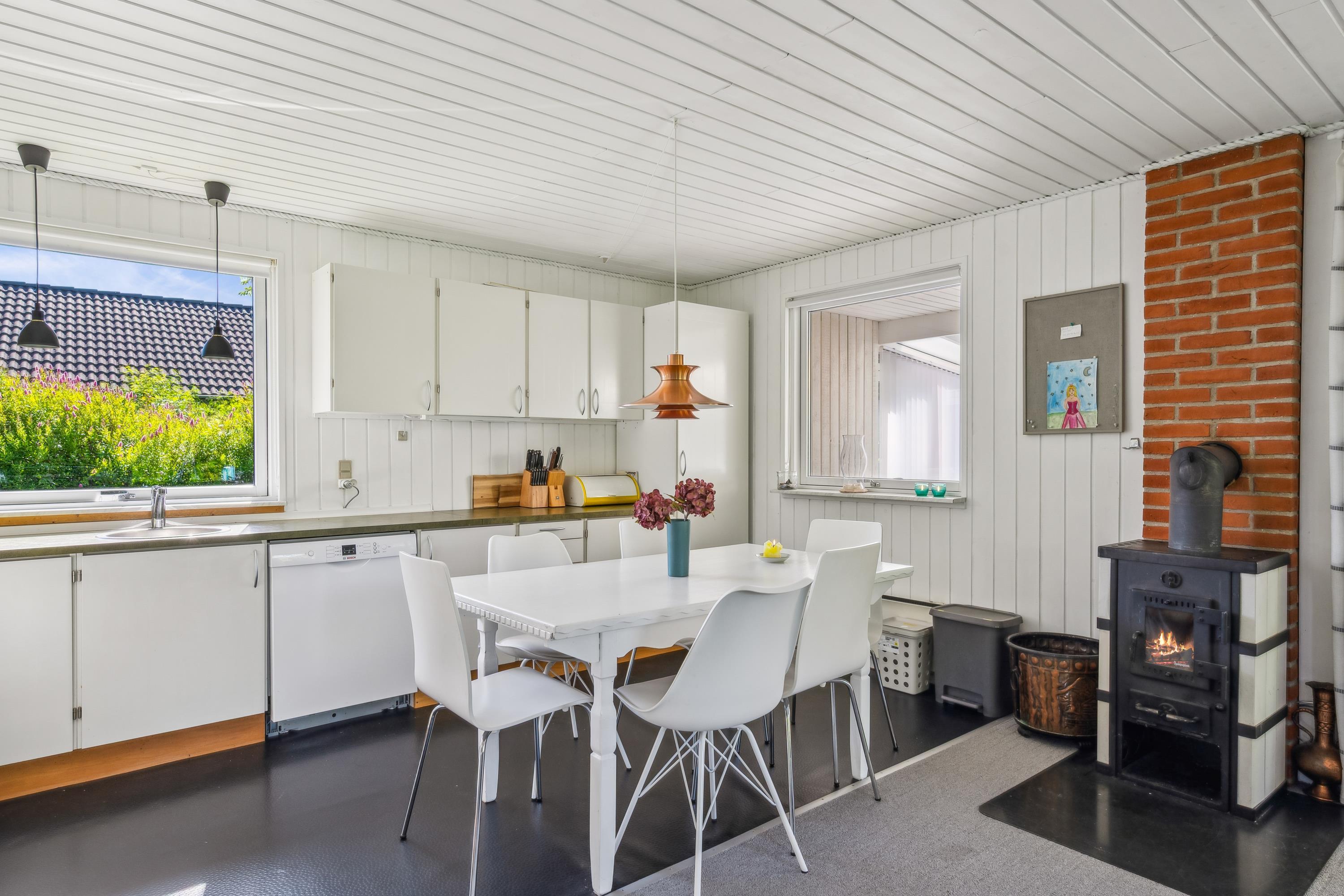 Tæt på en af Jyllands bedste badestrande finder man dette ældre men hyggelige hus. Her finder man en god lys stue med b.la. brændeovn og udgang til husets udestue. Fra udestuen er der udgang til en god terrasse med havemøbler. Det funktionelle køkken med b.la. opvaskemaskine og en god spiseafdeling finder man i forbindelse med stuen. Husets sovepladser fordeler sig i to værelser, heraf et værelse med en dobbeltseng og et værelse med en køjeseng. Desuden er der mulighed for to sovepladser på sovesofaen i stuen. Pænt badeværelse med gulvvarme samt adgang til vaskemaskine. Der er internet i huset og diverse danske og udenlandske kanaler. Der er diverse spil og legesager i huset til fri afbenyttelse. Huset er beliggende på en dejlig ugenert grund med græsplæne, velegnet til leg og udendørs aktiviteter. Fra huset er der ca 10 til 15 min gang til stranden.