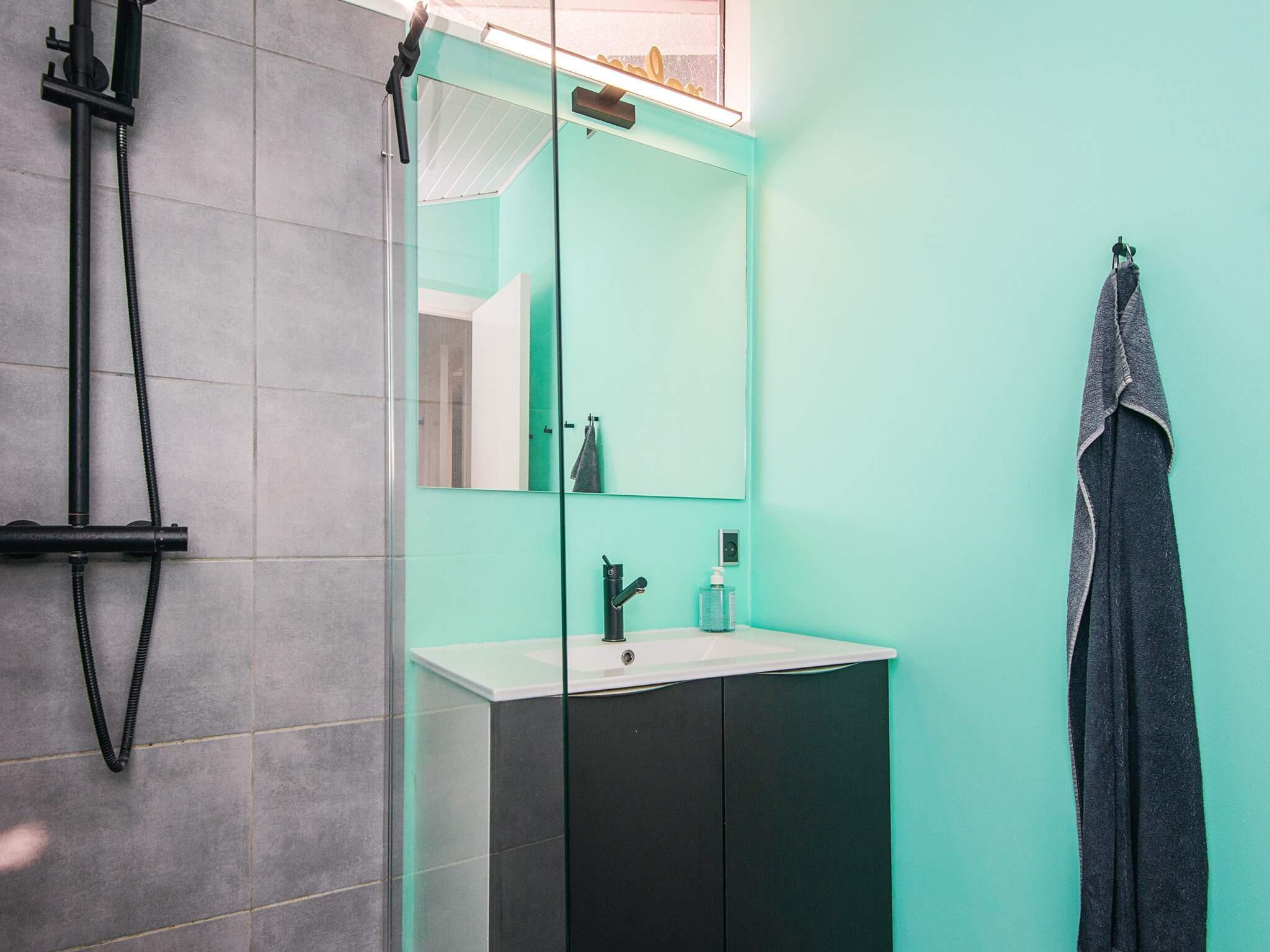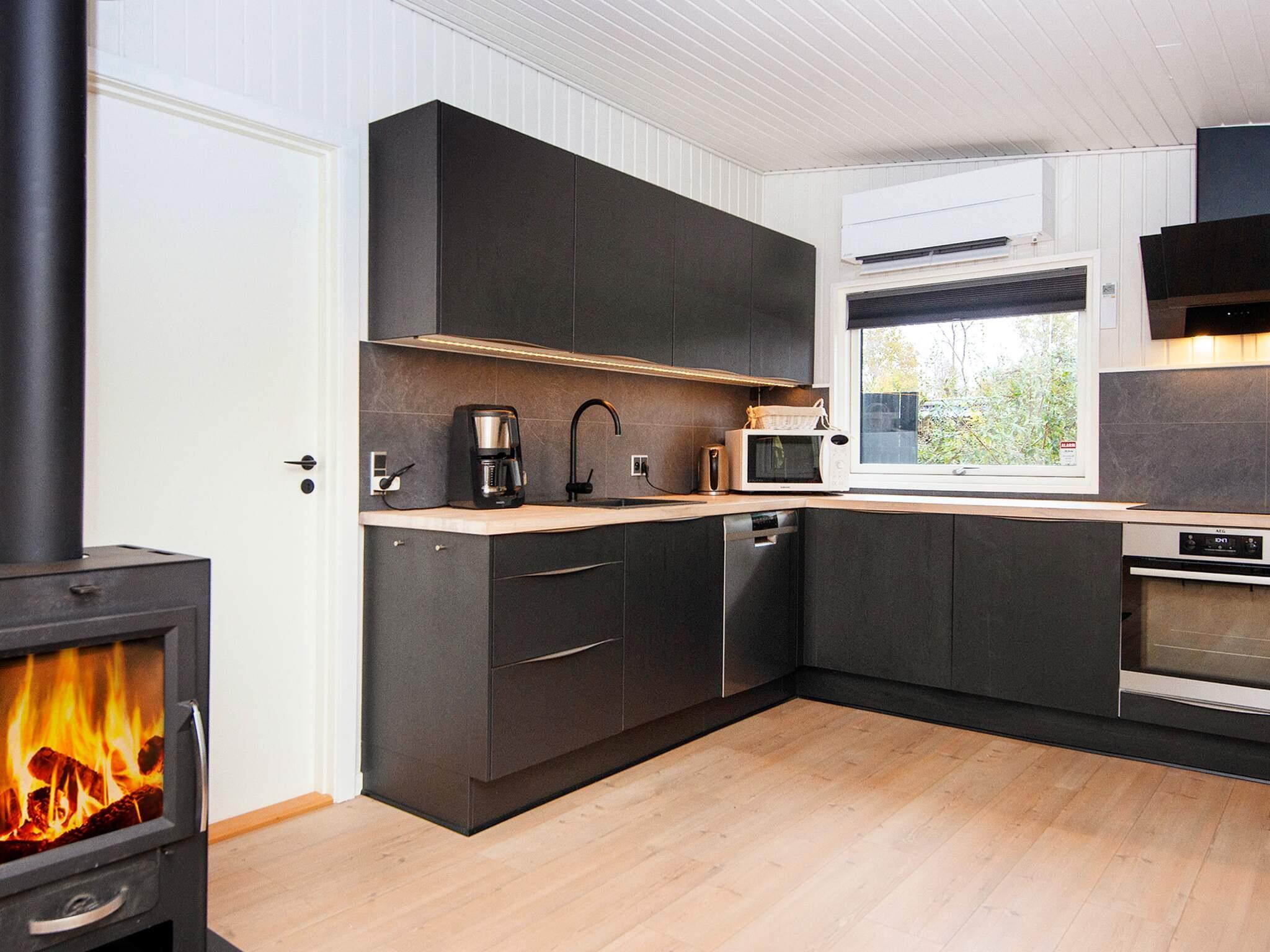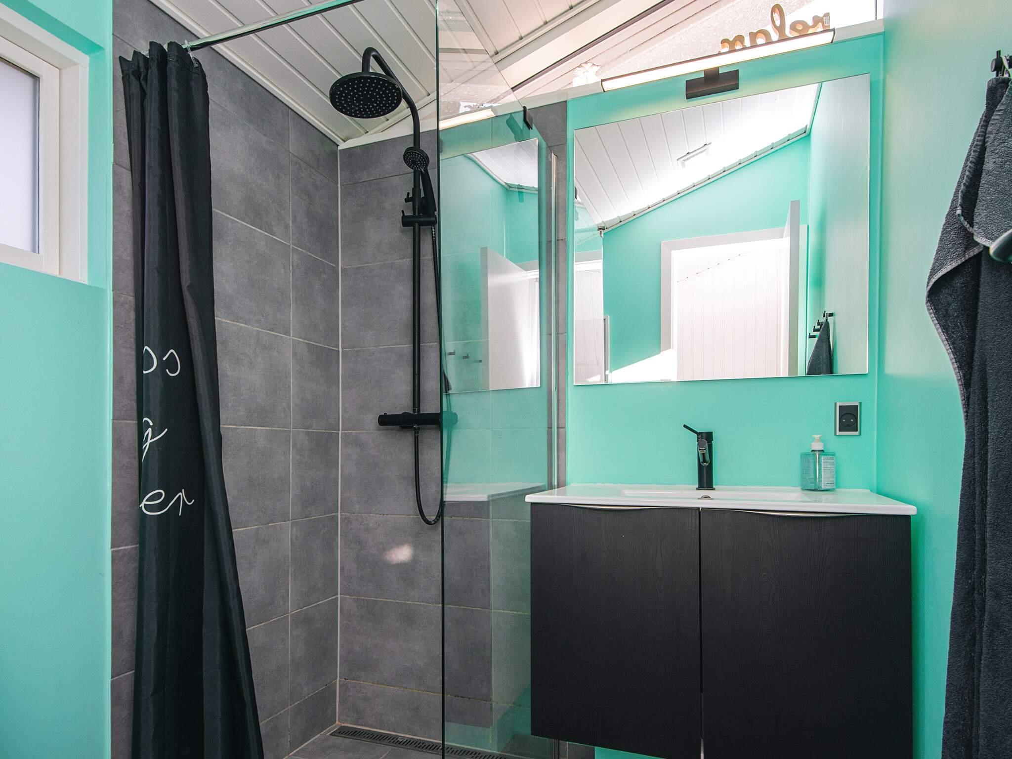 Indenfor finder du et lyst og rummeligt 32 kvadratmeter stort køkken og spiseplads, perfekt til at lave mad og samles efter en dag ved havet. En hyggelig stue på 20 kvadratmeter inviterer dig til at slappe af, uanset om du ser tv eller streamer dine yndlingsprogrammer over den gratis WiFi-forbindelse. Boligen har tre soveværelser og et velindrettet badeværelse med bruser, der giver alt hvad du behøver for et behageligt ophold.