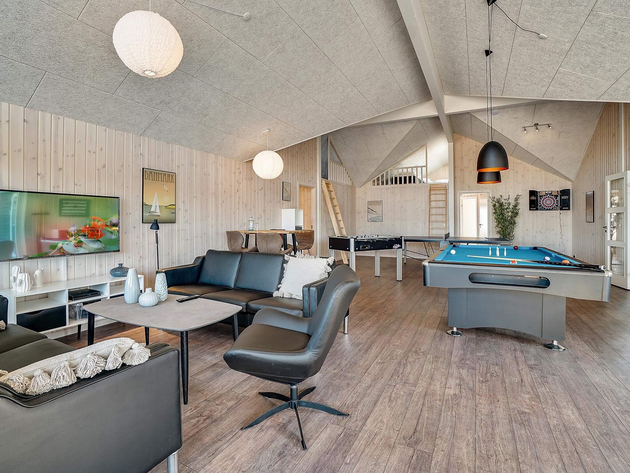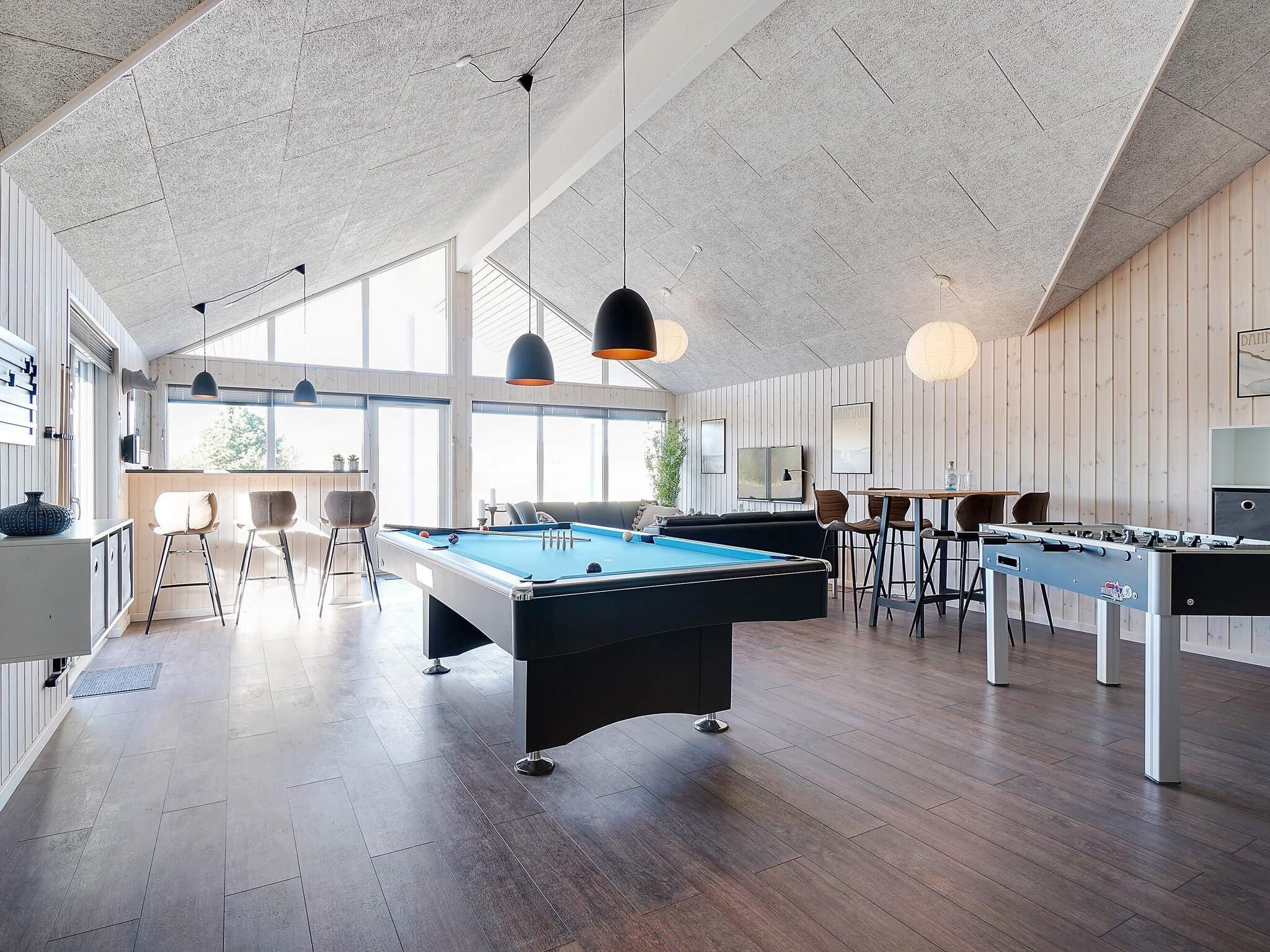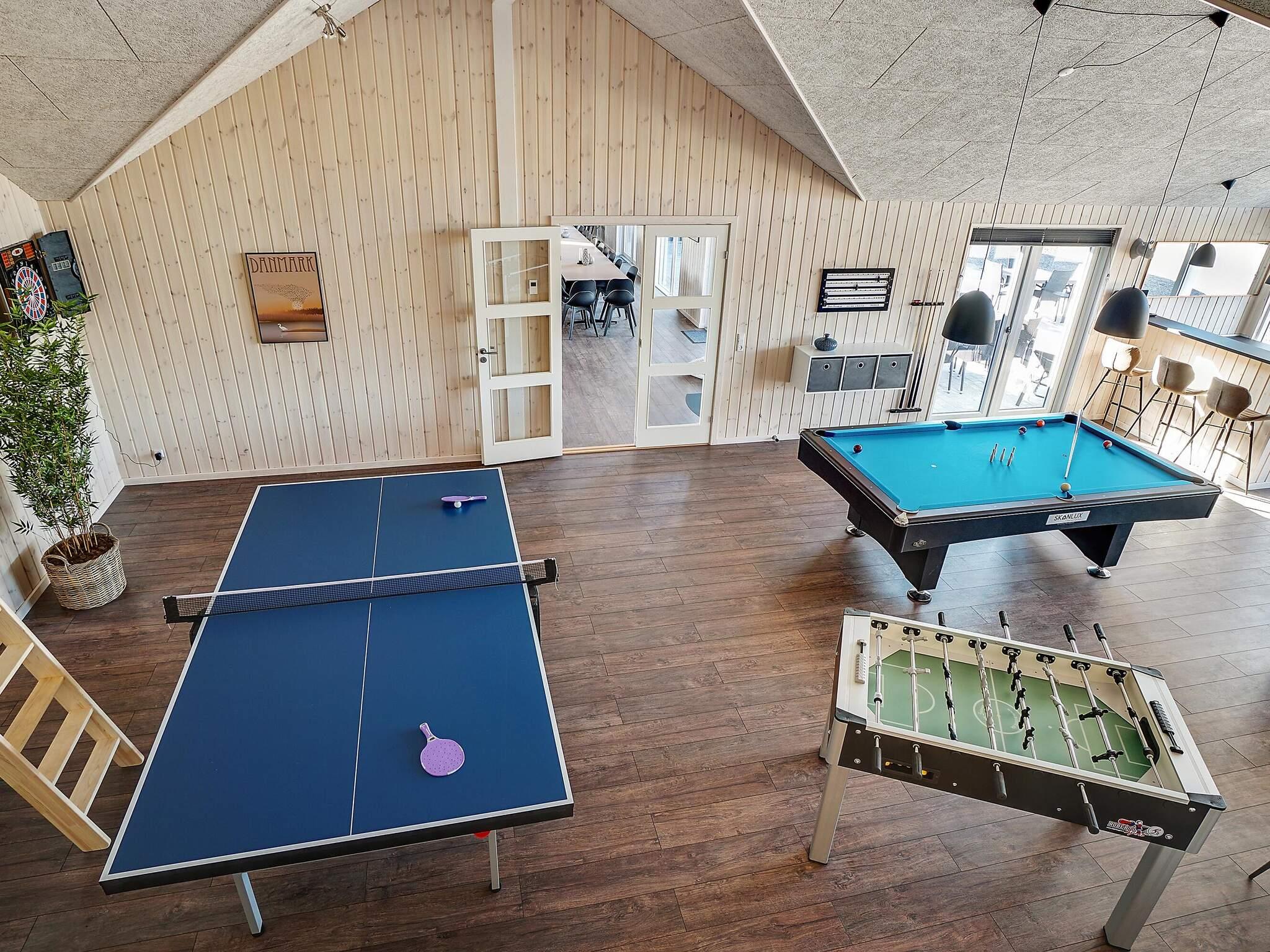Uanset om du leder efter afslapning og ro eller action og eventyr, har dette store sommerhus aktiviteter for alle. Bordtennis, billard, bordfodbold, dart og spillekonsoller kan alle findes i det store aktivitetsrum, hvor du kan arrangere turneringer og konkurrere om at blive familiens spillemester. Spillelokalet har også sin egen bar med køleskab, hvor man kan servere kolde drinks efter en omgang action.