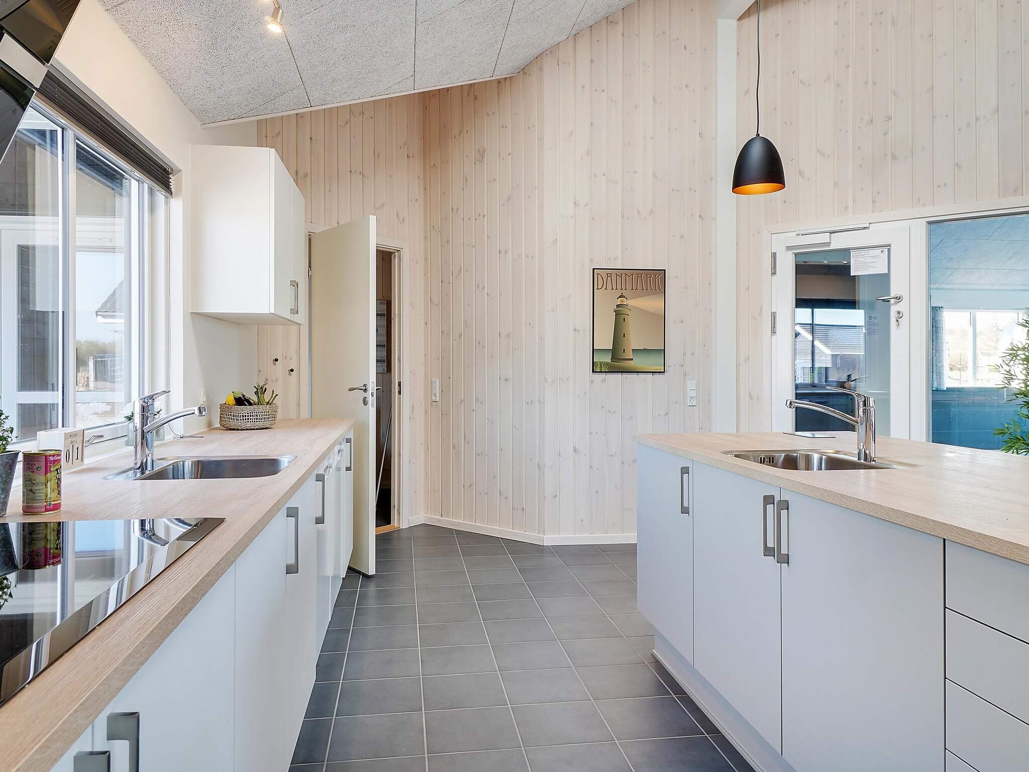 Midt i sommerhuset finder I køkkenet/alrummet med et veludstyret køkken, en hyggelig sofagruppe, samt et langt spisebord med plads til 30 personer, så hele familien kan nyde måltiderne sammen. Med to ovne, komfurer, vaske, opvaskemaskiner og masser af køleskabsplads er det nemt at tilberede lækker mad til mange mennesker.