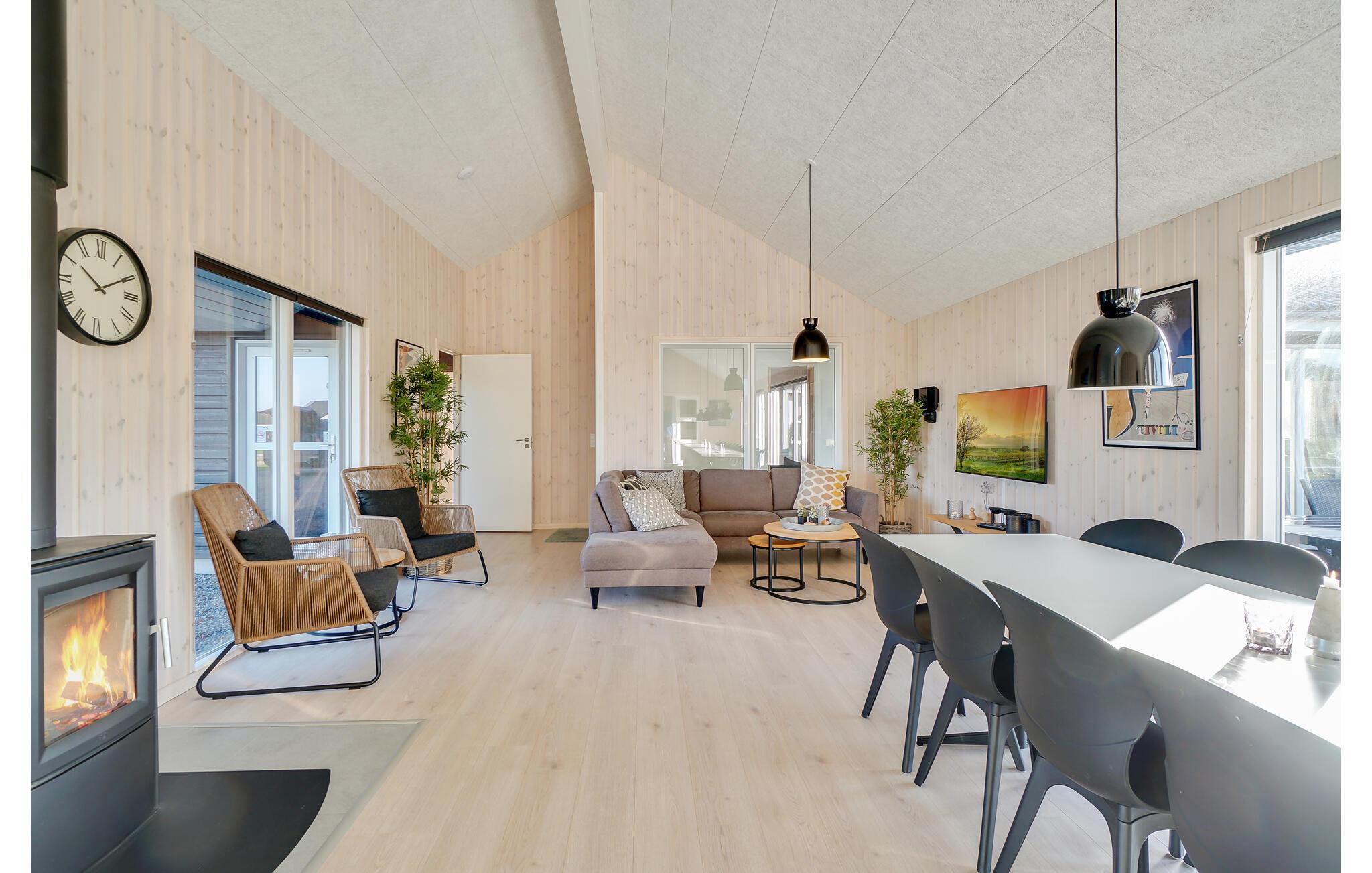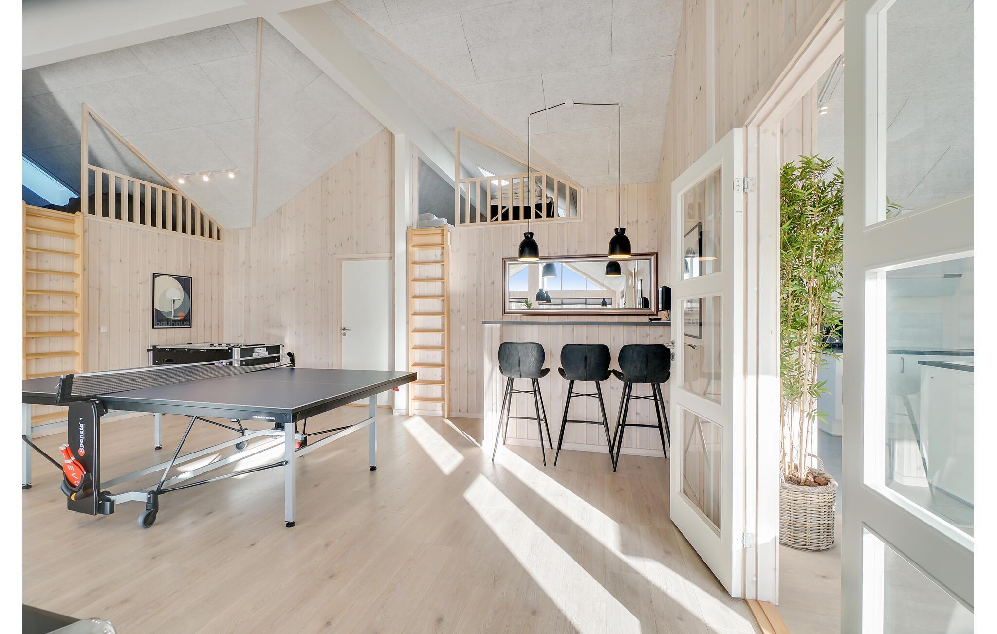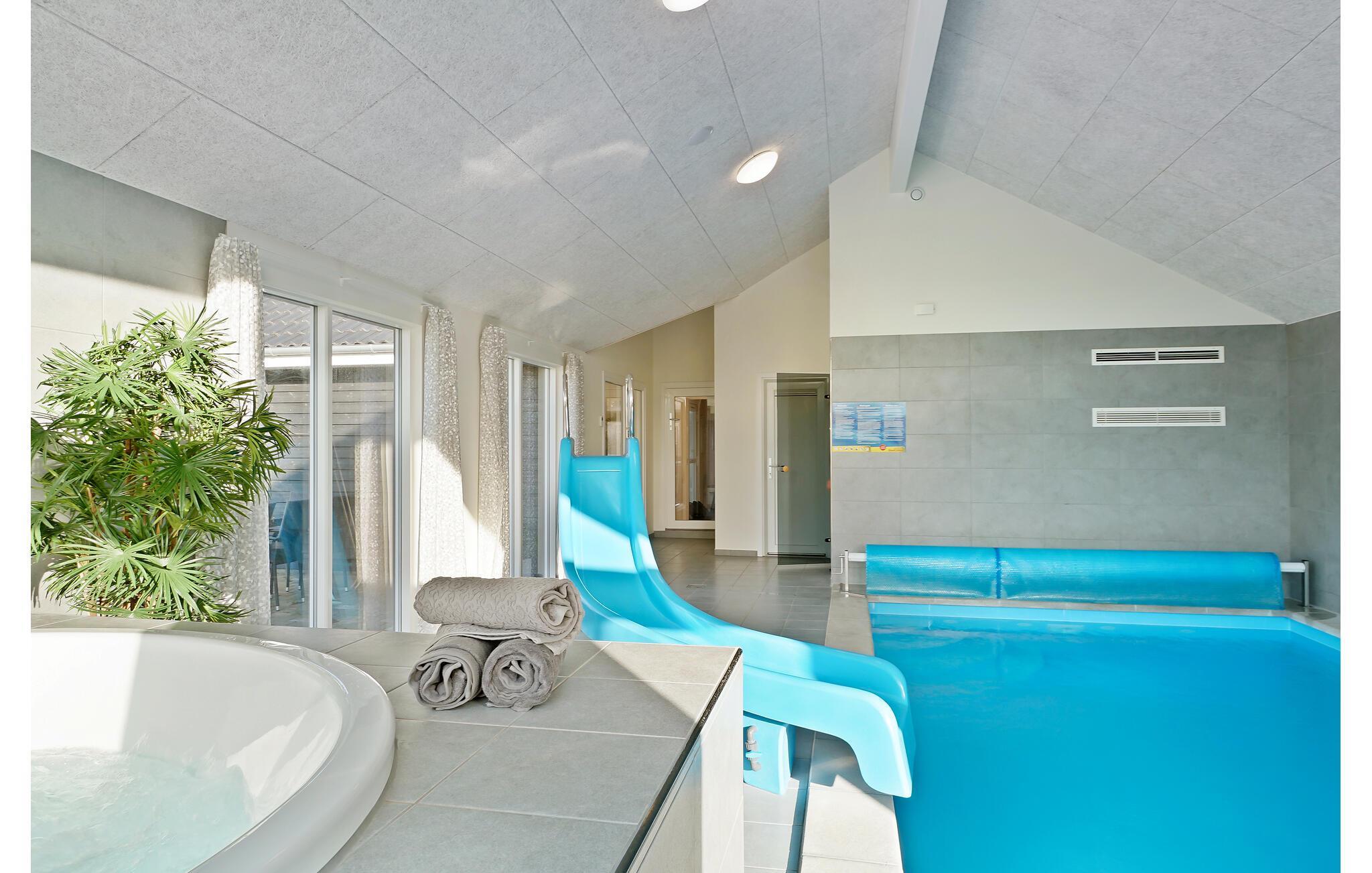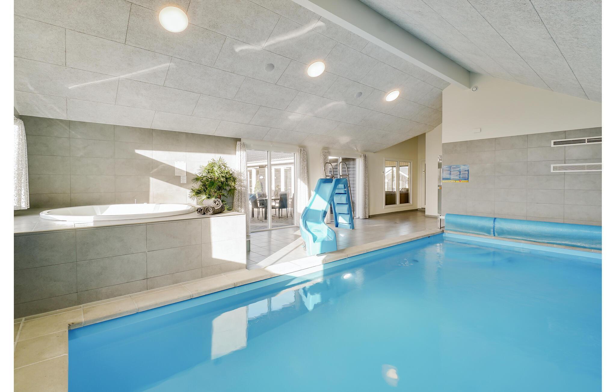 Dette skønne sommerhus byder velkommen syd for Grenaa. Her er plads til op til flere familier og en række gennemtænkte faciliteter giver de bedste vilkår for en behagelig og hyggelig ferie. Spil Playstation eller udfordr hinanden til et spil pool eller bordfodbold. Husets hovedattraktion er den smukke pool med modstrømssystem og vandrutsjebane til mange timers badesjov. Drag fordel af det rummelige, moderne køkken, mens I laver mad, og nyd feriemåltiderne i en hyggelig atmosfære om aftenen. Der er også plads udenfor til at lege og spille bold. Når vejret er godt, kan I tilbringe hyggelige timer på terrassen og lave en lækker grillmiddag, mens børnene hygger sig på trampolinen eller i legetårnet.