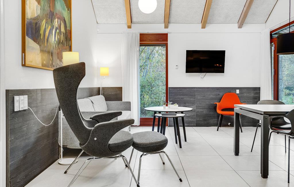 Dette lyse, indbydende og praktiske sommerhus byder op til fem gæster og et barn velkommen. Det har en hyggelig stue med køkken. Her kan I slappe dejligt af foran brændeovnen. Der strømmer dejligt meget lys ind gennem de store vinduespartier.