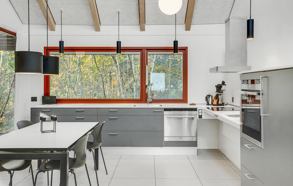 Dette lyse, indbydende og praktiske sommerhus byder op til fem gæster og et barn velkommen. Det har en hyggelig stue med køkken, hvor I kan slappe af foran brændeovnen. Der strømmer dejligt meget lys ind gennem de store vinduespartier.