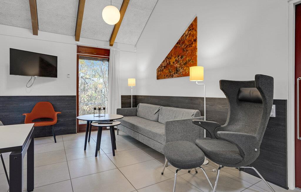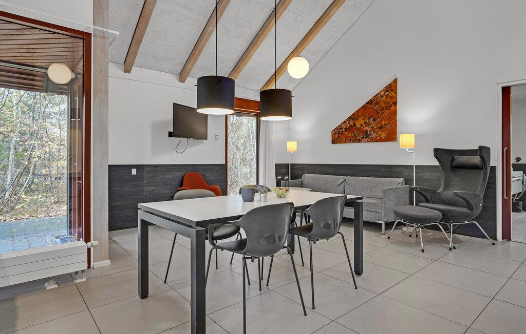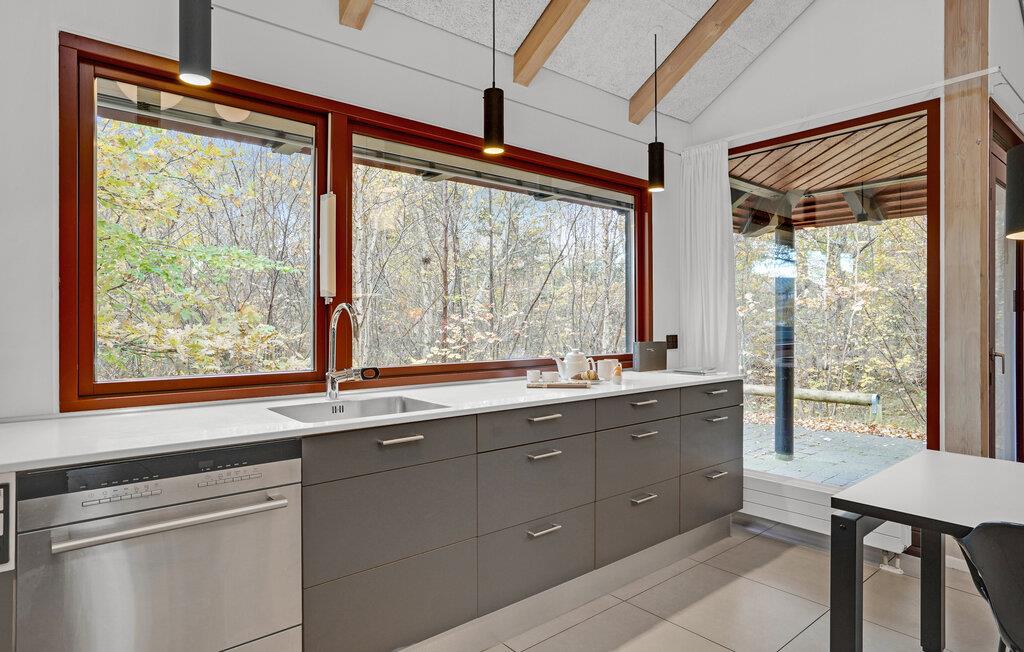 Dette lyse, indbydende og praktiske sommerhus byder op til fem gæster og et barn velkommen. Det har en hyggelig stue med køkken, hvor I kan slappe af foran brændeovnen. Der strømmer dejligt meget lys ind gennem de store vinduespartier.