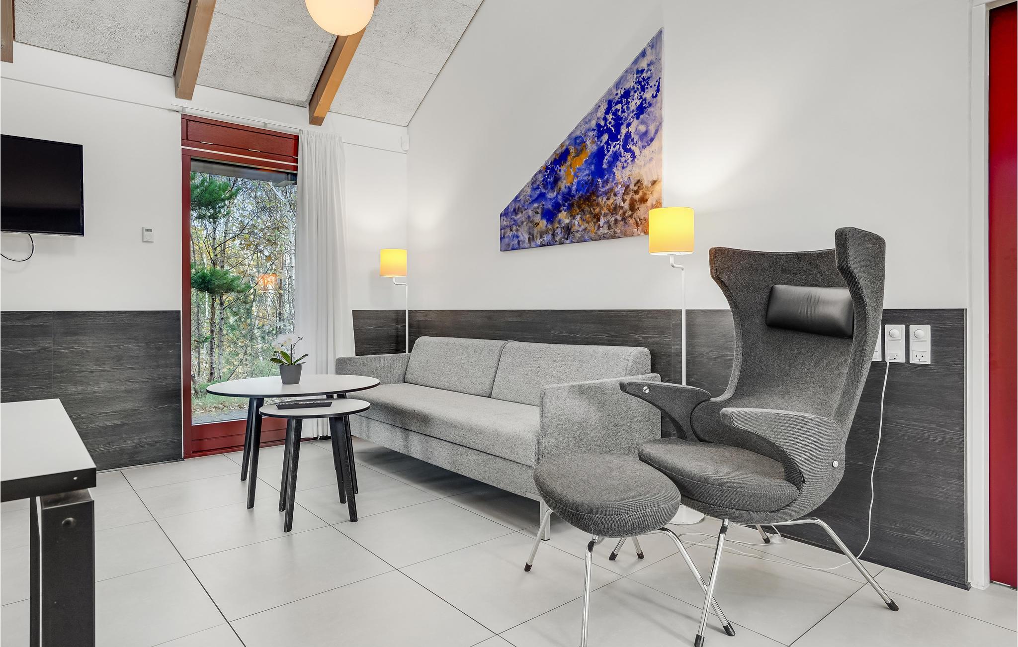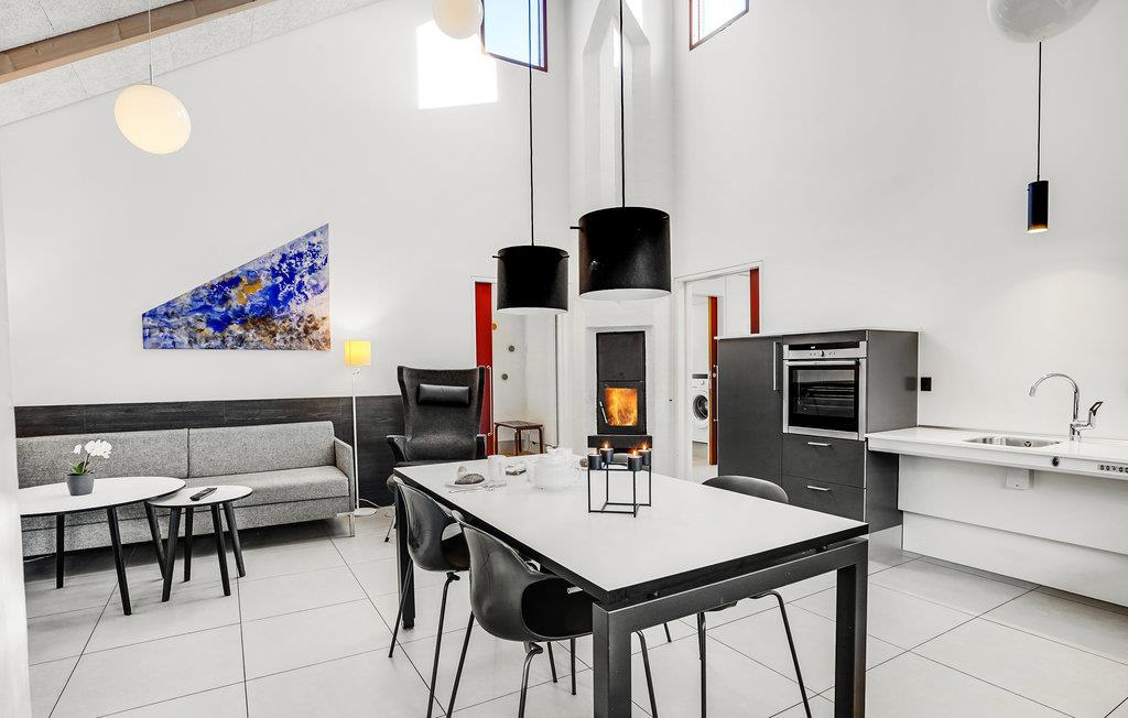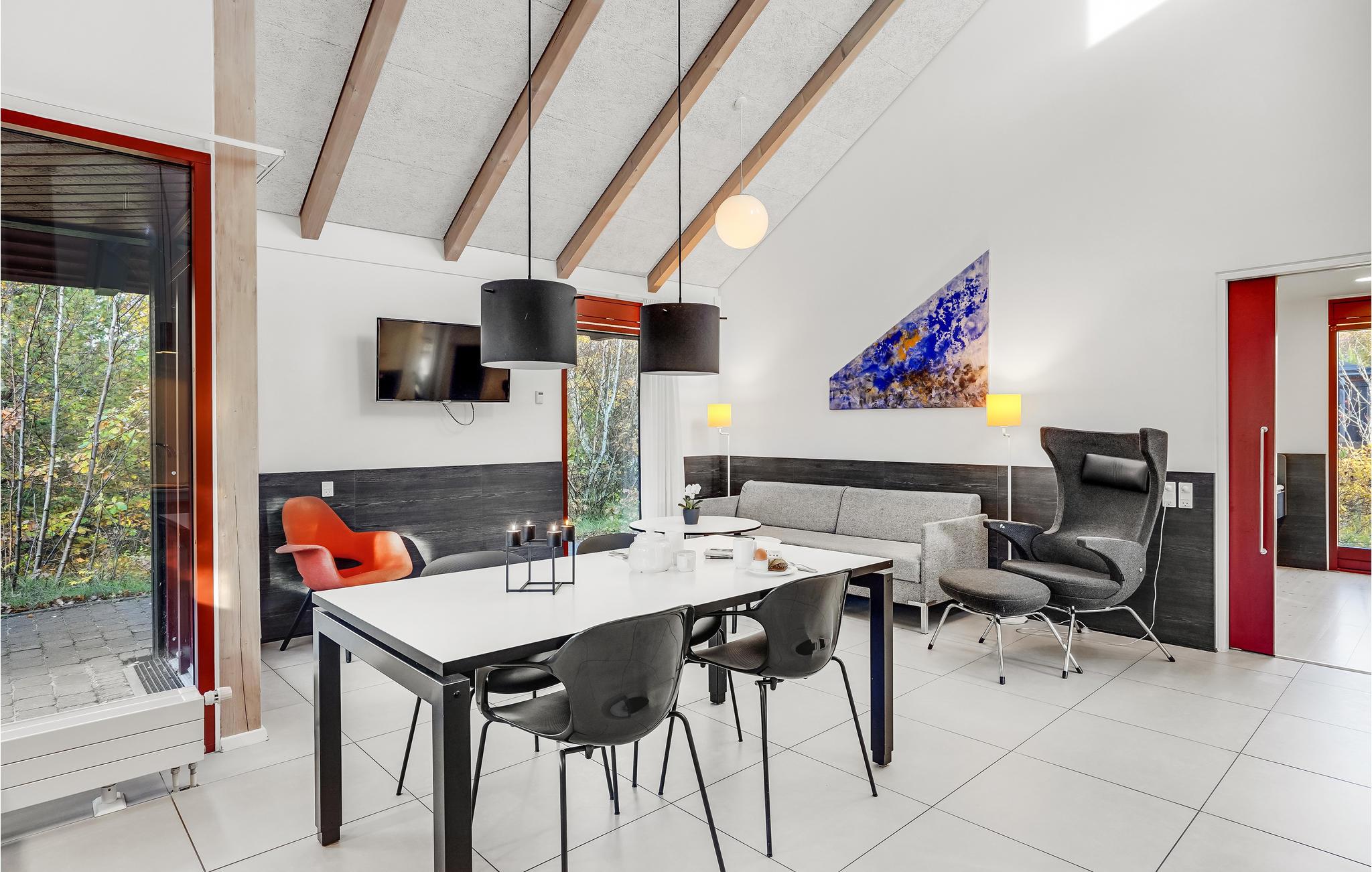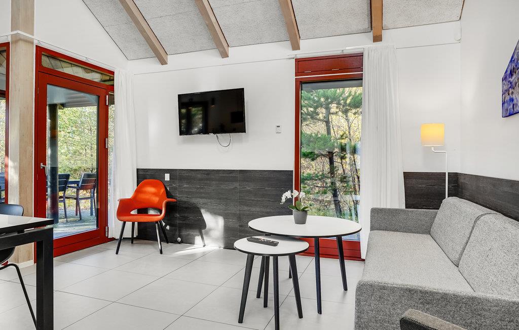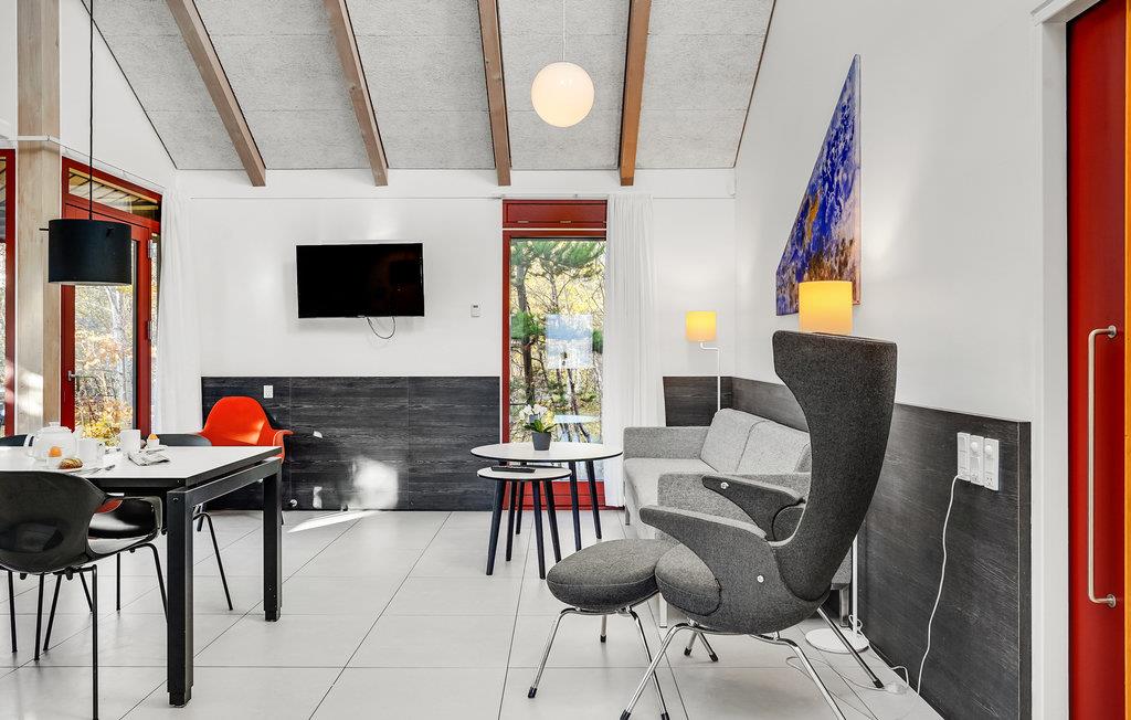 Dette lyse, indbydende og praktiske sommerhus byder op til fem gæster og et barn velkommen. Det har en hyggelig stue med køkken, hvor I kan slappe af foran brændeovnen. Der strømmer dejligt meget lys ind gennem de store vinduespartier.