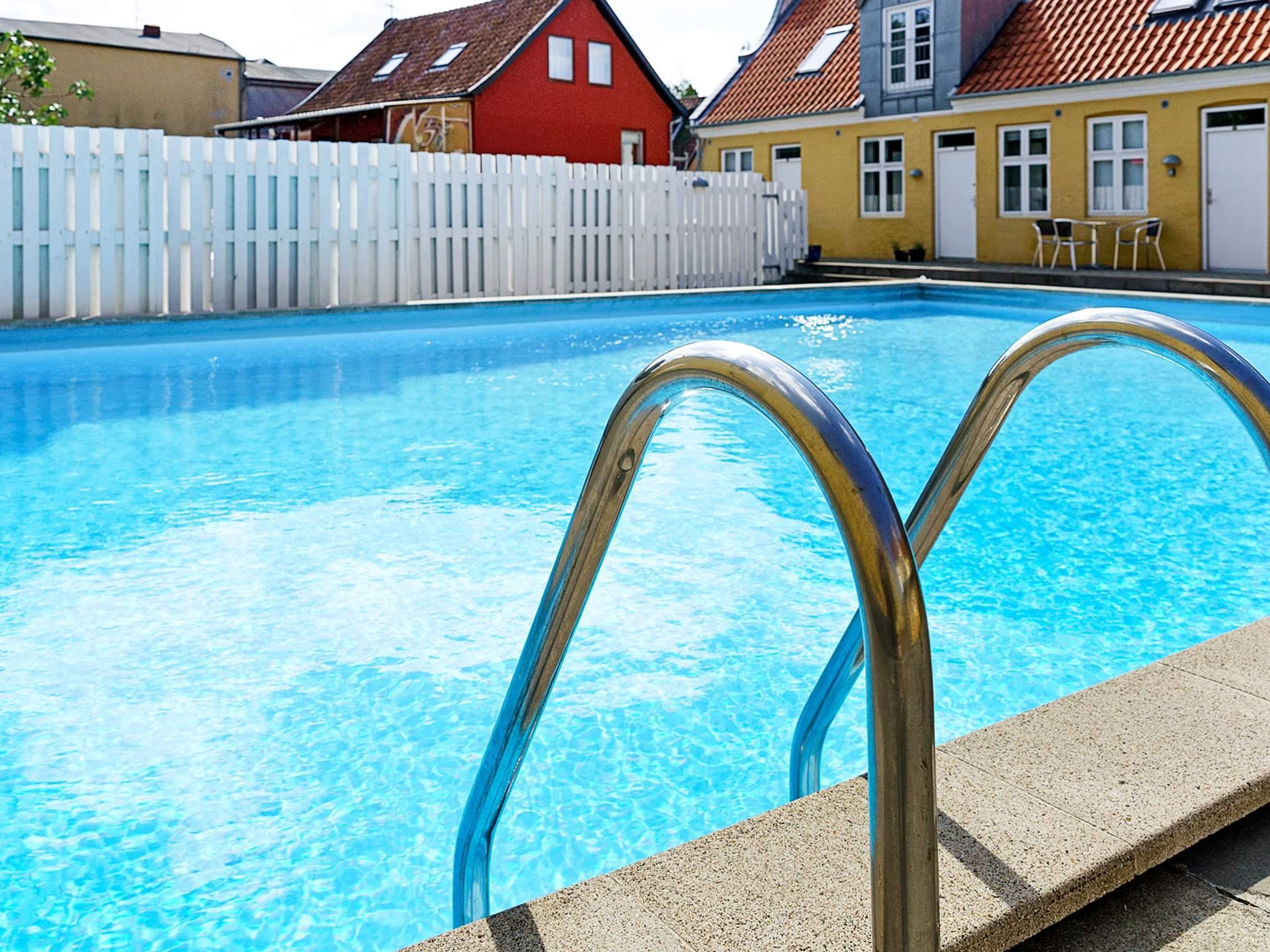 Charmerende lejlighed i Gudhjem med havudsigt, terrasse og adgang til fælles pool i hjertet af byen.