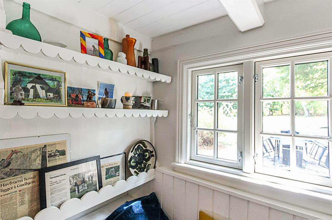 Sarahhuset er et charmerende og historisk stråtækt bindingsværkshus med panoramaudsigt over havet nær Gudhjem.