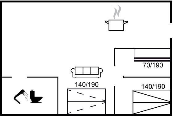 Der er i alt 2 soveværelser. Sovepladserne fordeler sig på: 2 sovepladser i dobbeltseng. 2 sovepladser i køjeseng. 2 sovepladser i sovesofa (dobbelt).