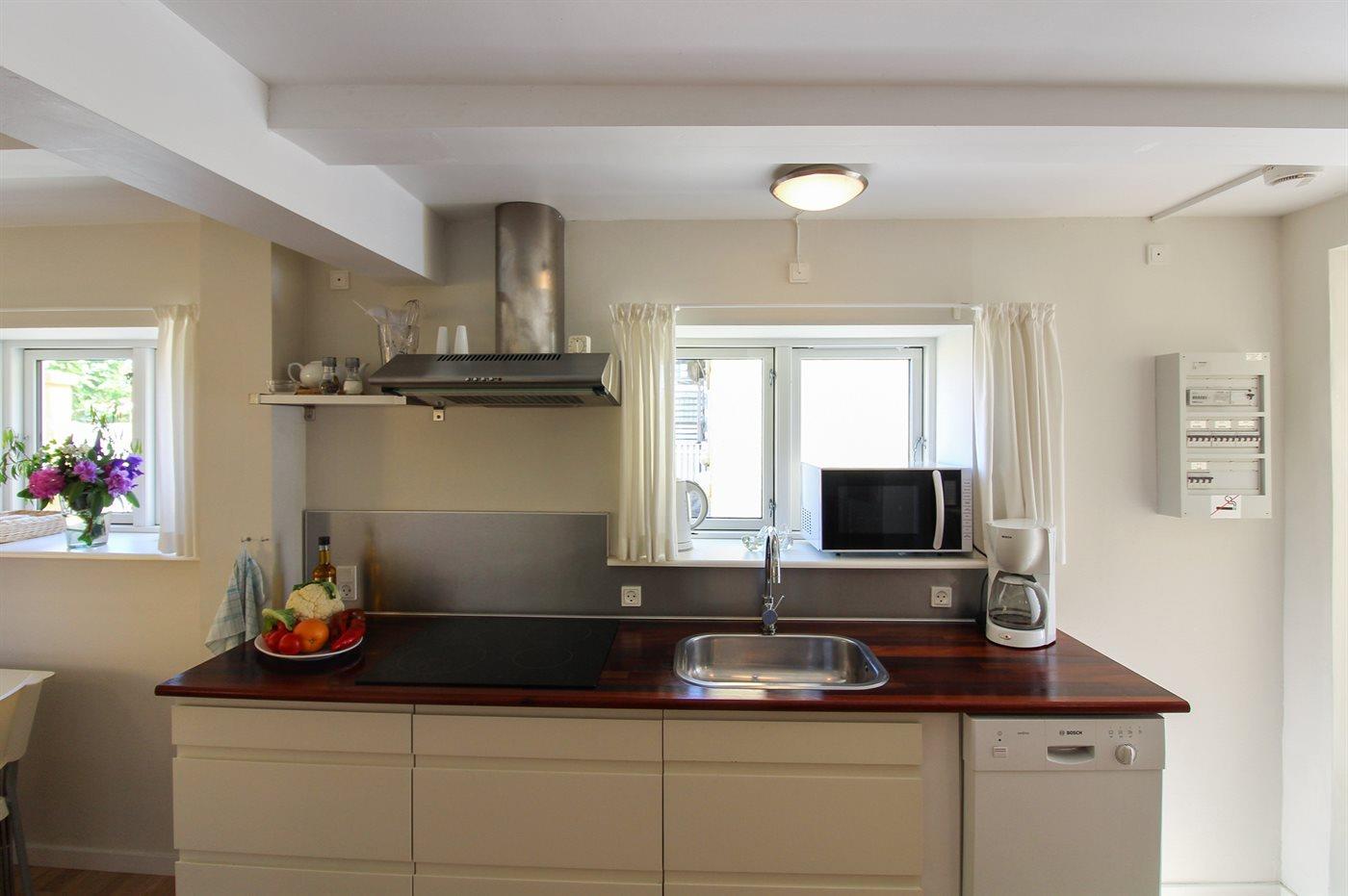 Køkkenet er udstyret med 1 køleskab. Der er 4 keramiske kogeplader, miniovn, mikrobølgeovn samt opvaskemaskine.