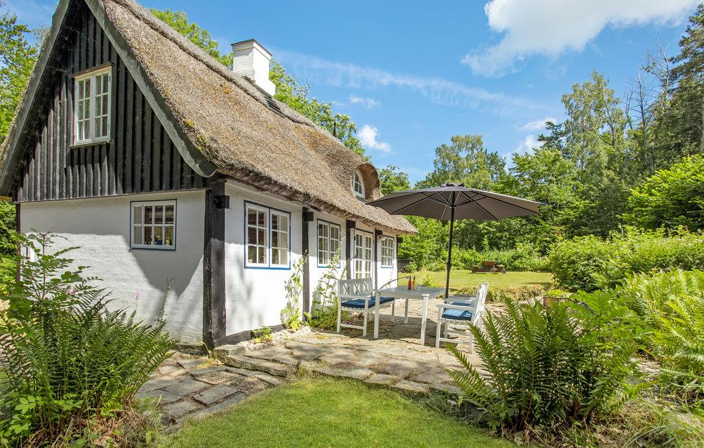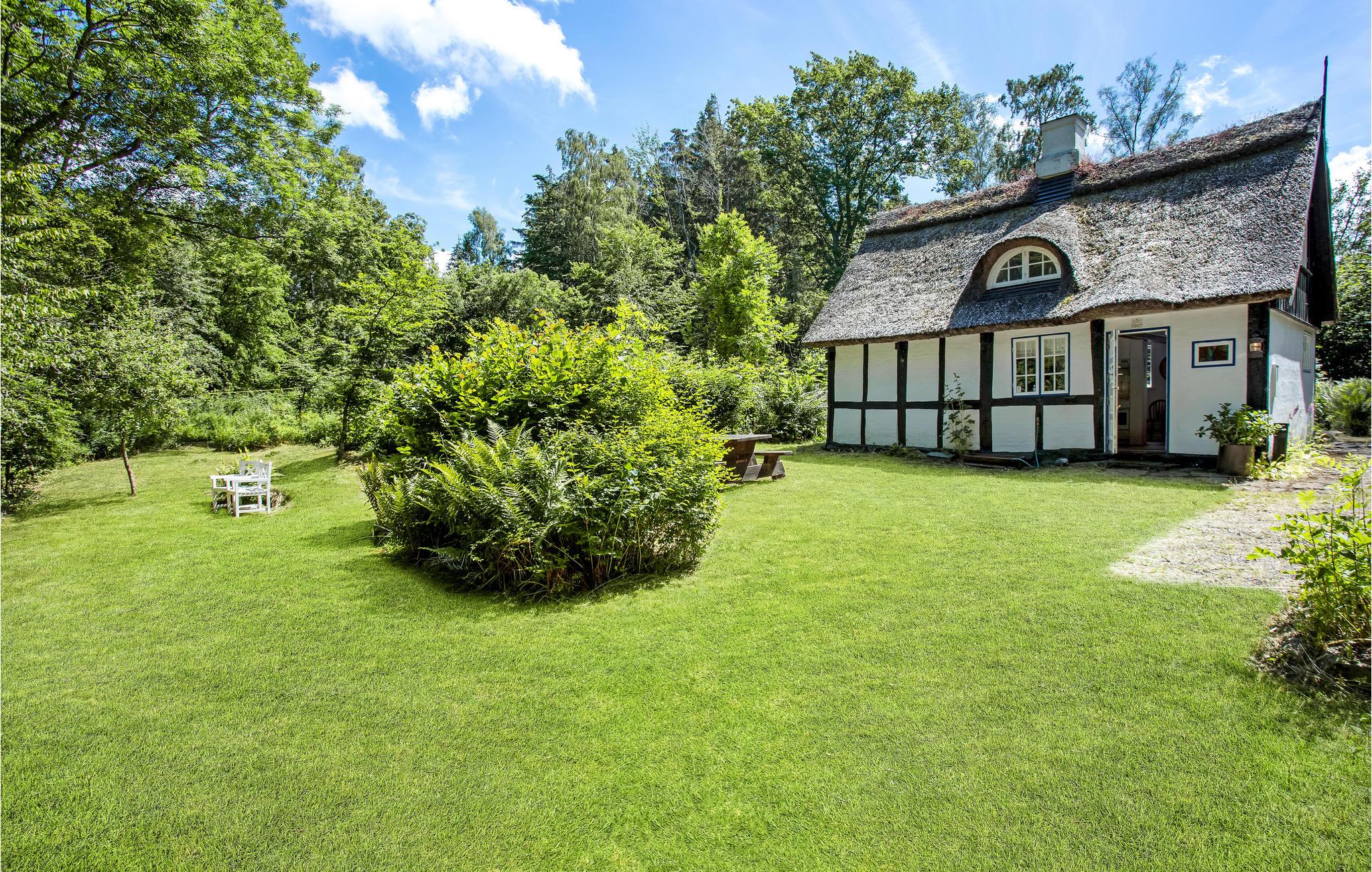 Skønt bindingsværkshus med stråtag og brændeovn samt idylliske omgivelser.