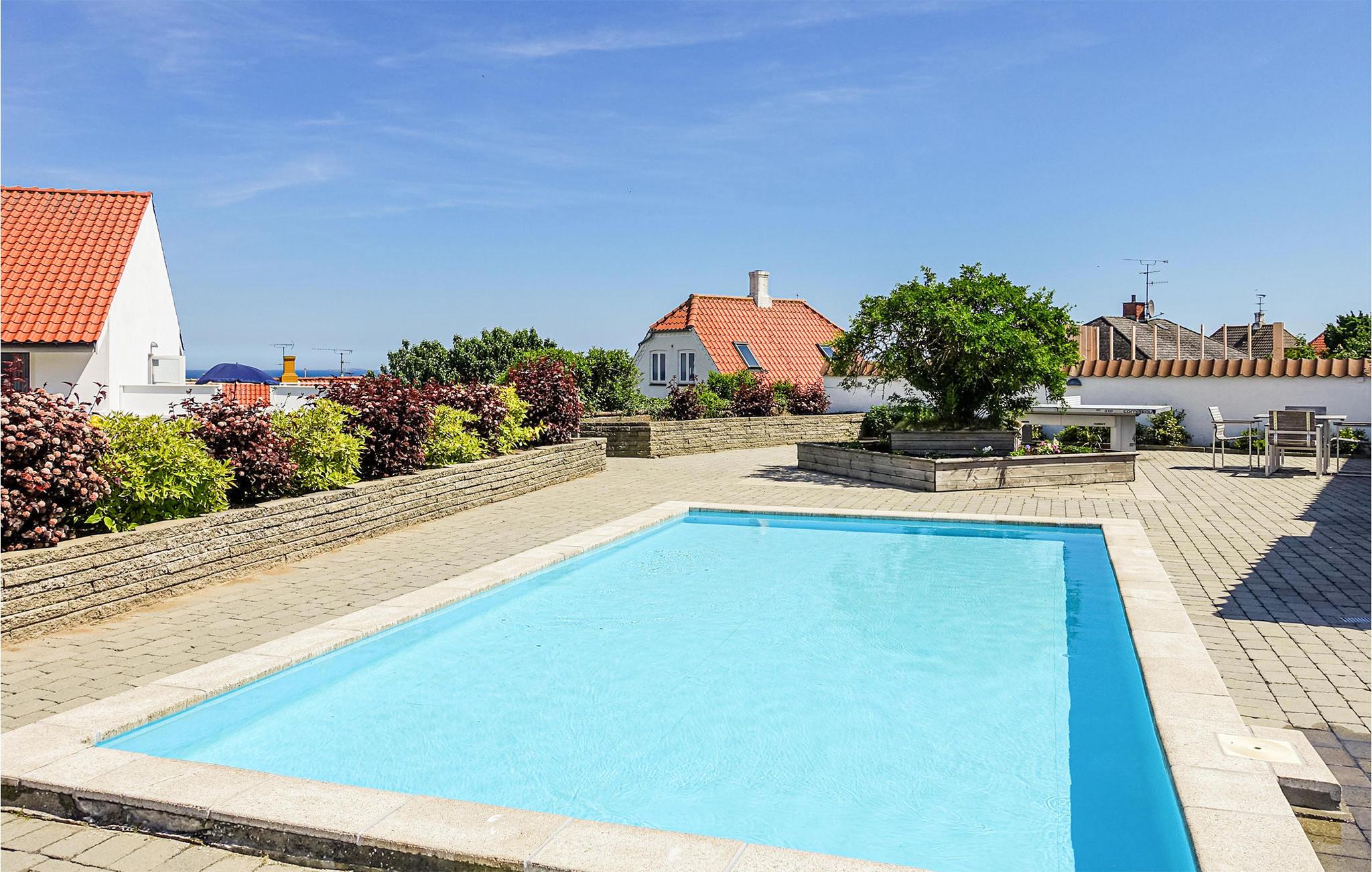 Charmerende ferielejlighed i Gudhjem med fælles pool, klippehave og terrasse tæt på havet og byens attraktioner.