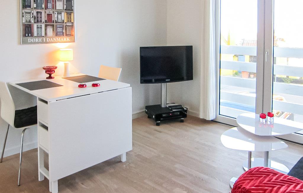 Sammensæt ferieretterne i den moderne køkkenafdeling, der ligger i åben forbindelse med opholdrummet, hvor I kan give jer god tid omkring spisebordet og slappe af i sofaen. Soveværelset er dejligt rummeligt og adskilt fra stuen af en skydedør. I har desuden udgang til en mindre terrasse med havemøbler, hvor I kan tage en pause i solen.