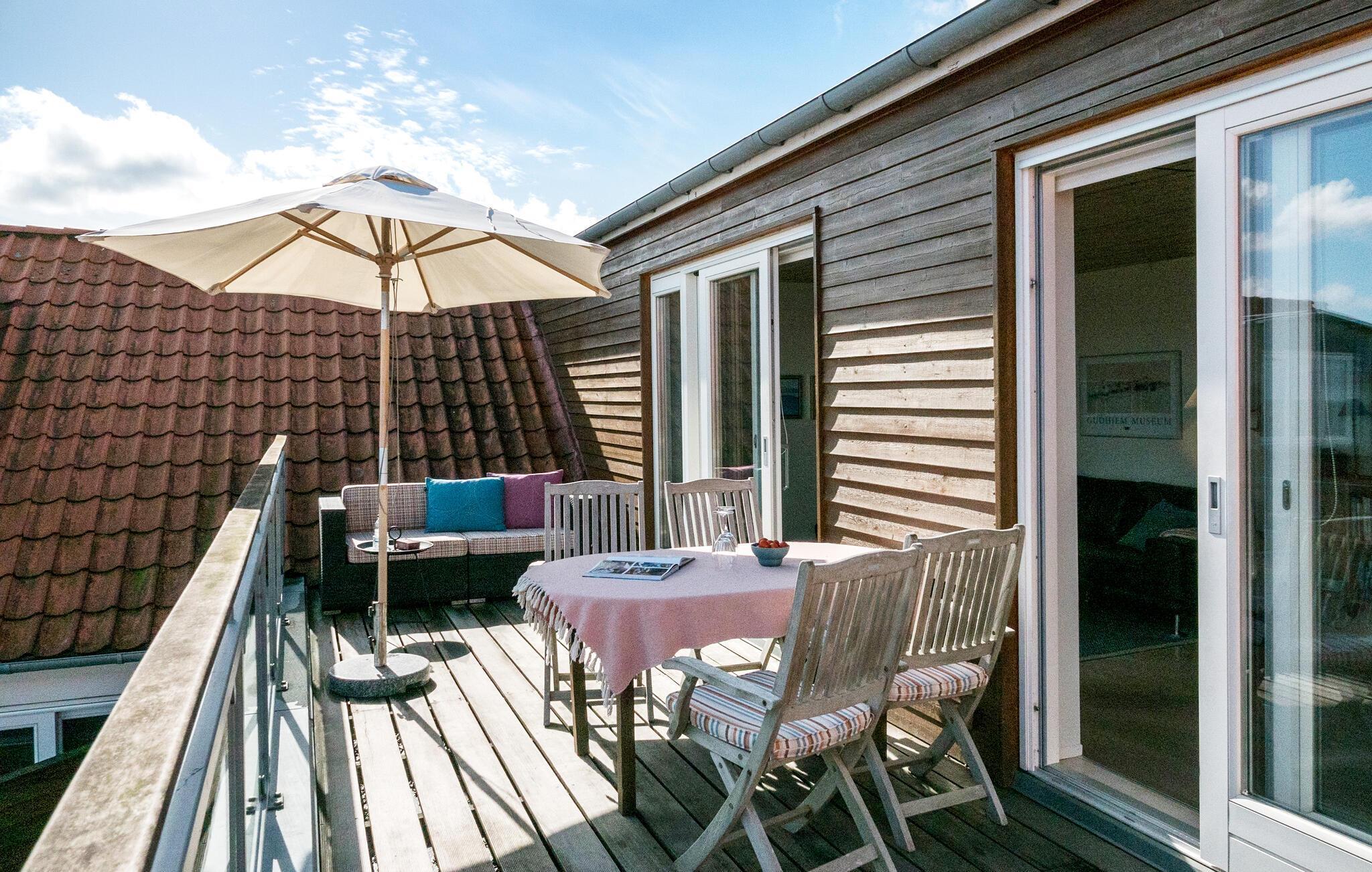 Luksuslejlighed i Gudhjem med fantastisk havudsigt og to terrasser til afslapning og grill.