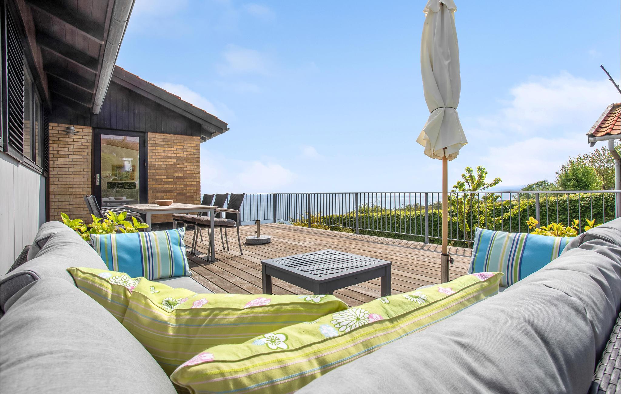 Til huset hører en stor altan med morgensol og havudsigt - det perfekte sted til morgenmaden og dagens første kop kaffe. Derudover har I glæde af en stor træterrasse med havemøbler, en grill til hyggelige grillaftener og selvfølgelig masser af havudsigt. Den dejlige, store have byder på masser af plads til leg og aktivitet.