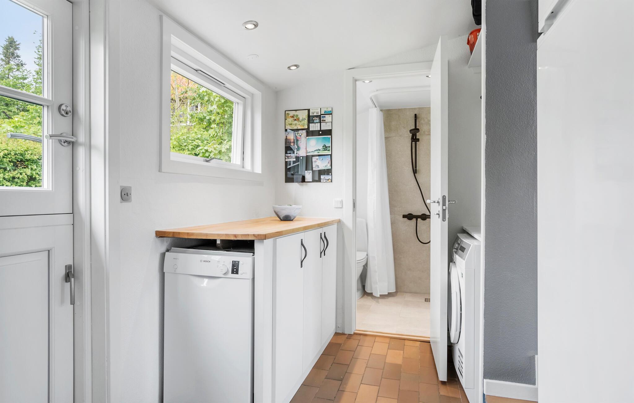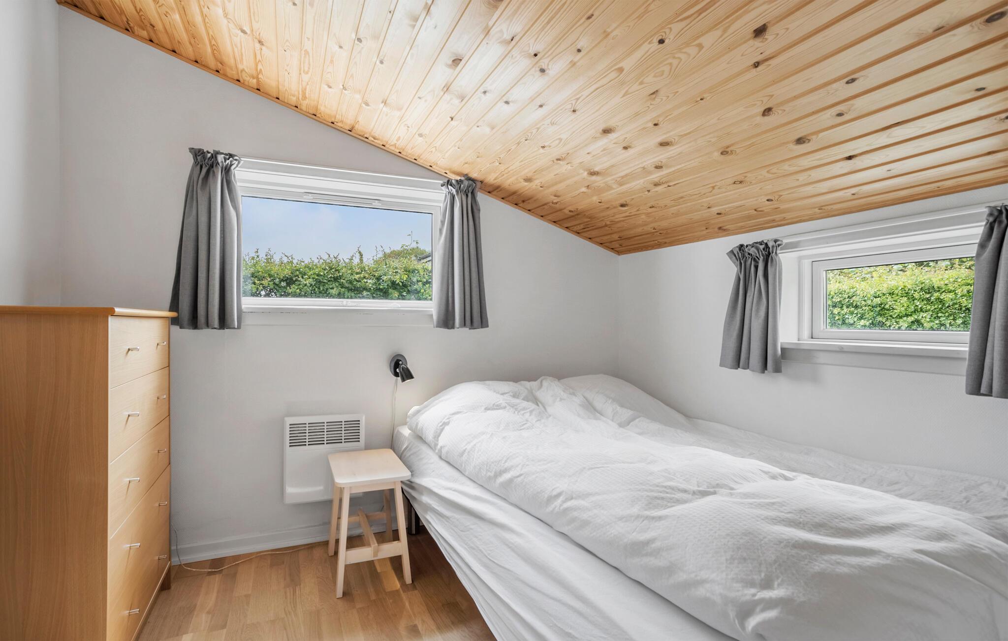 I opholdsstuen m. spiseplads kan I slappe af og se fjernsyn, høre radio eller musik og om vinteren nyde varmen og den hyggelige atmosfære fra brændeovnen. Der er behagelig gulvvarme på husets badeværelse. I annekset (som udgør 12 m2 af de totale 77 m2) finder I to enkeltsenge.