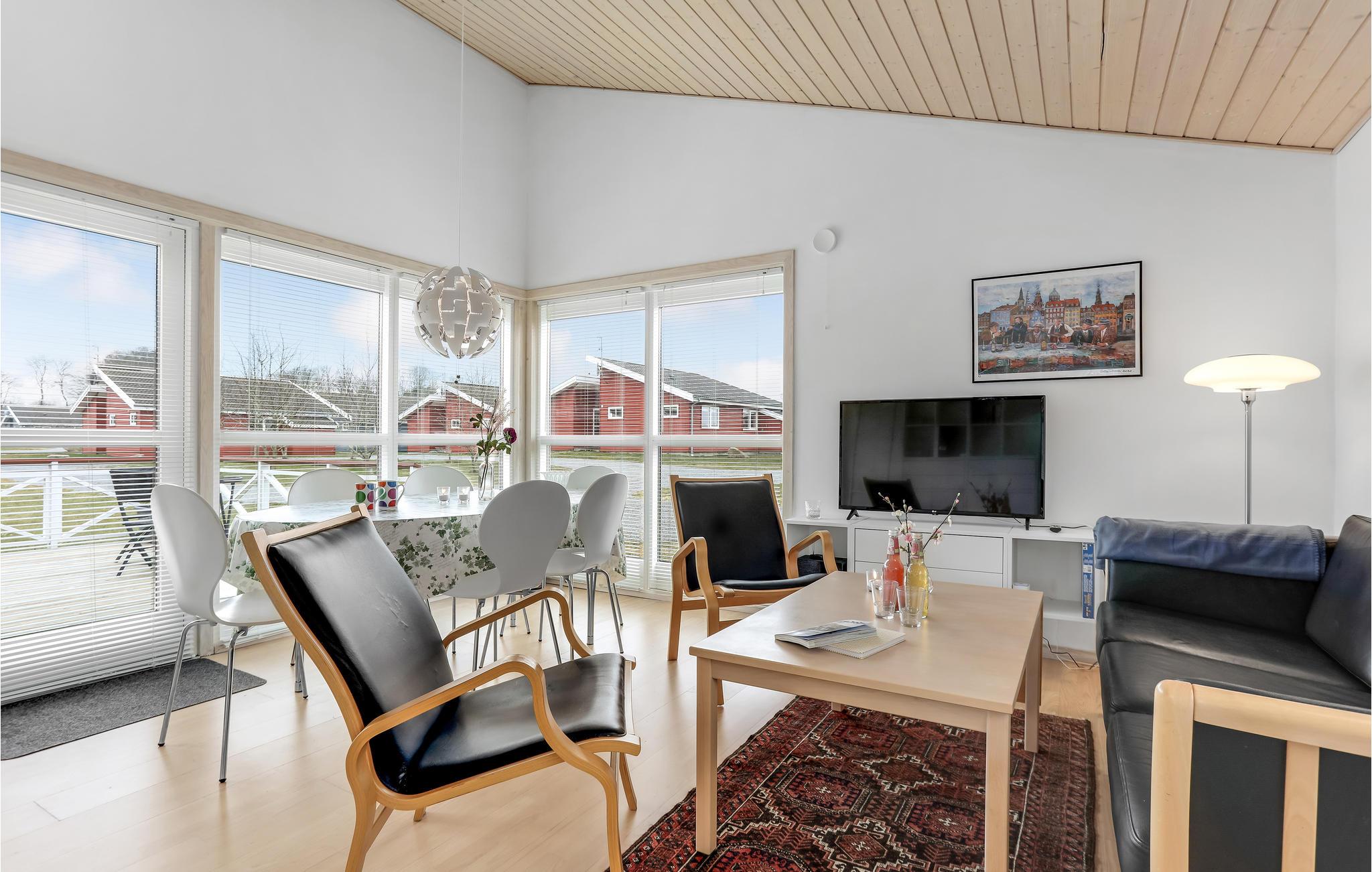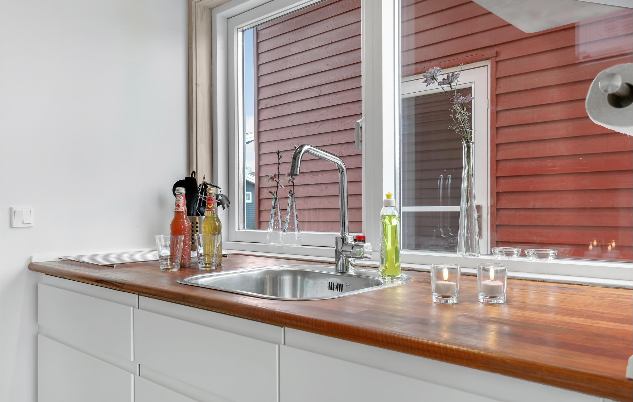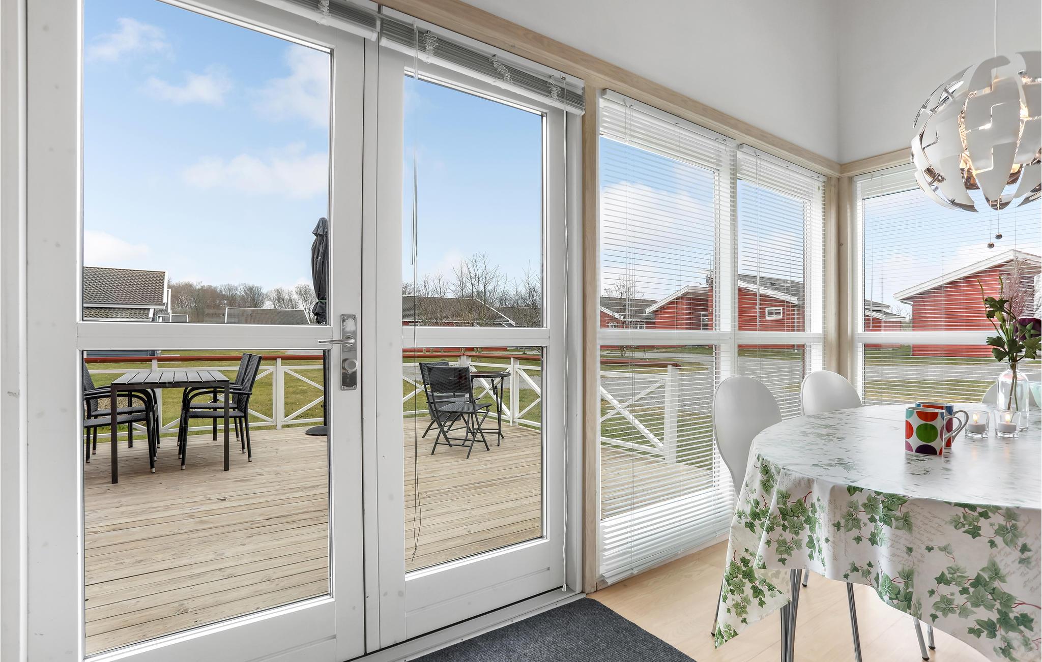 Huset er pænt og moderne indrettet, og så er rummene godt fordelt. I stuen er der et skønt lysindfald fra de store vinduer ud mod terrassen, så her får I gode rammer til at nyde måltiderne og slappe af efter dagens eventyr. I har nem adgang til vandet og øens mange attraktioner.