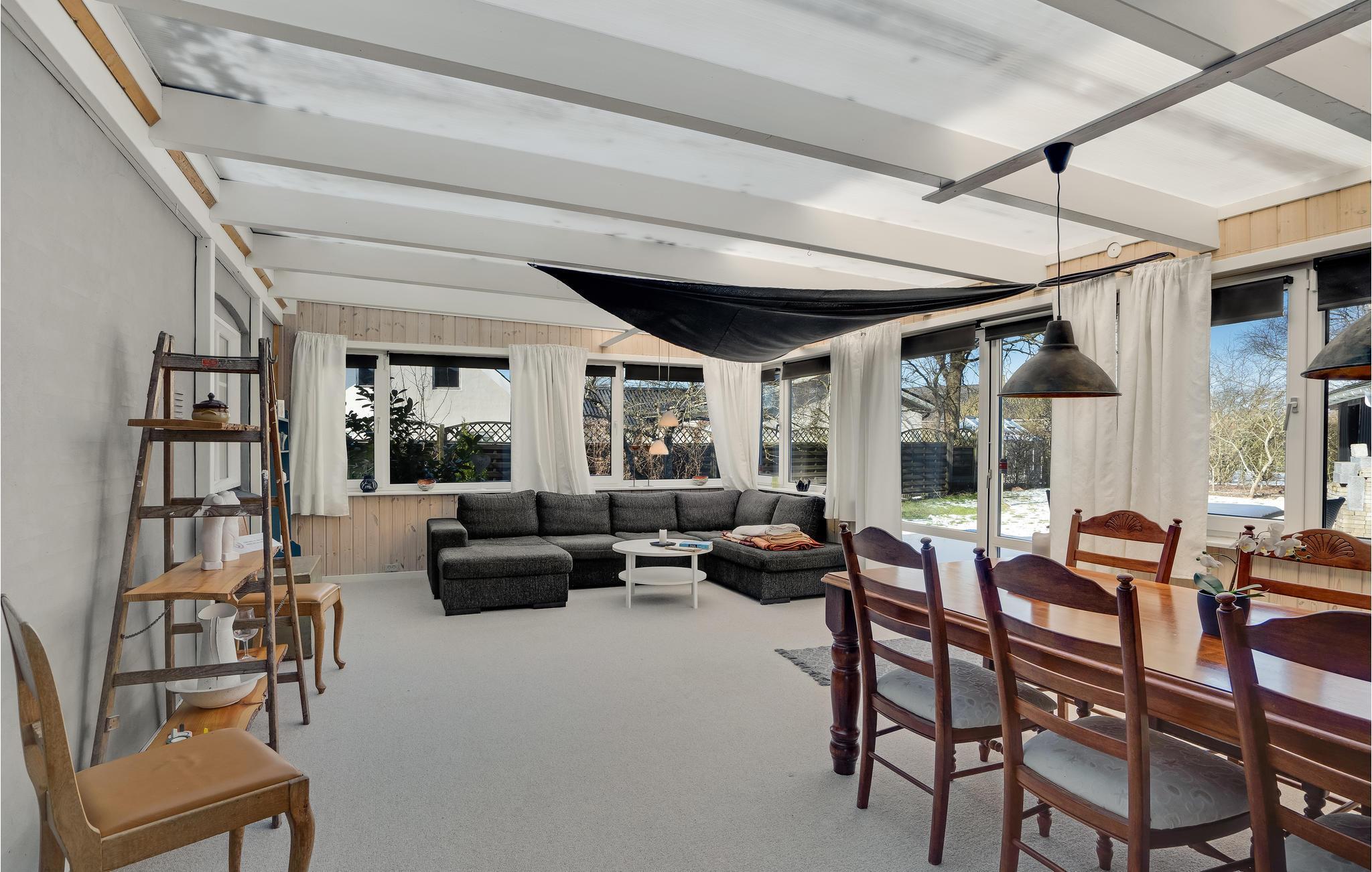 Velkommen til Håsum og dette lyse og indbydende sommerhus. Boligen tilbyder jeres store familie et dejligt udgangspunkt for jeres aktiviteter og når I vender hjem efter en aktiv dag er der masser af plads til at lege, lave mad og slappe af. Nyd jeres aftener sammen med at se en film eller spise sammen i udestuen eller på terrassen, alt efter vejret. Haven er en skøn afslapningsoase efter jeres aktive dage i naturen, og her kan børnene også lege.