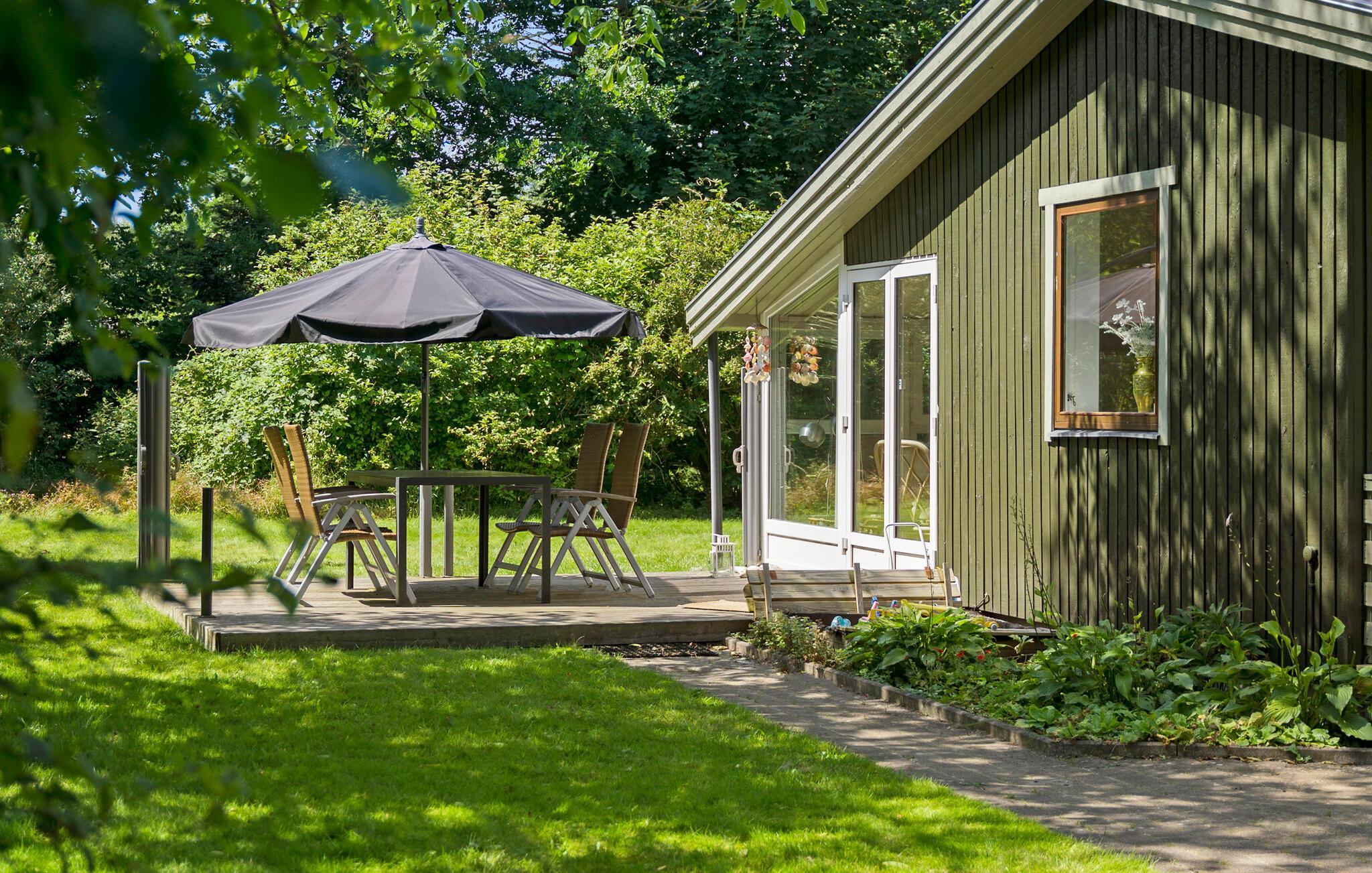 I kan også se frem til en masse gode stunder udendørs. Benyt lejligheden til at spille en volleyballkamp eller læn jer tilbage på terrassen, mens børnene hygger sig på gyngerne, i sandkassen og hopper på trampolinen. De høje træer sørger for behagelig læ og skygge på de varme solskinsdage. Skulle en regnsky kigge forbi, er der både bordfodbold, billard og dart inde i huset.