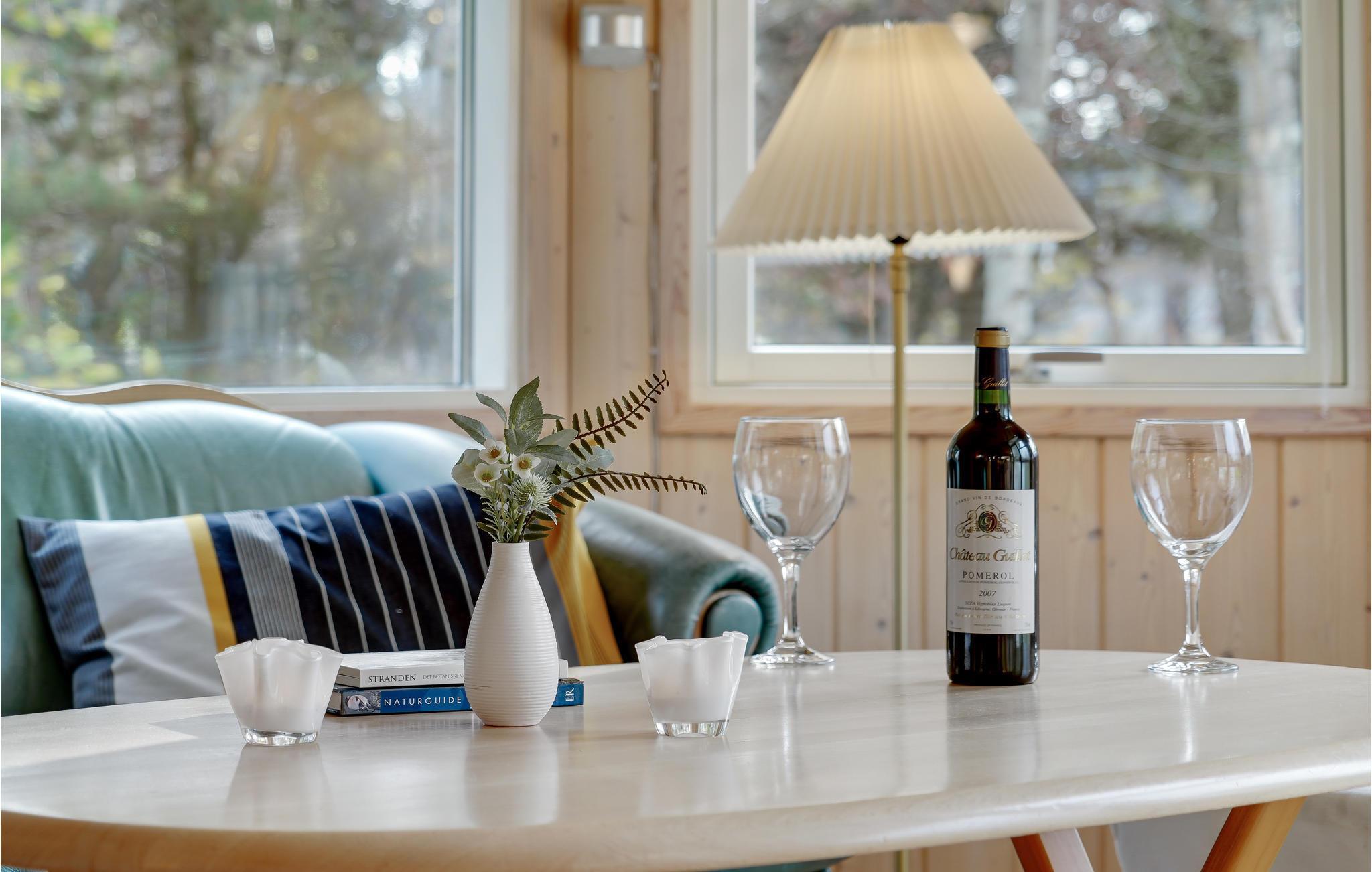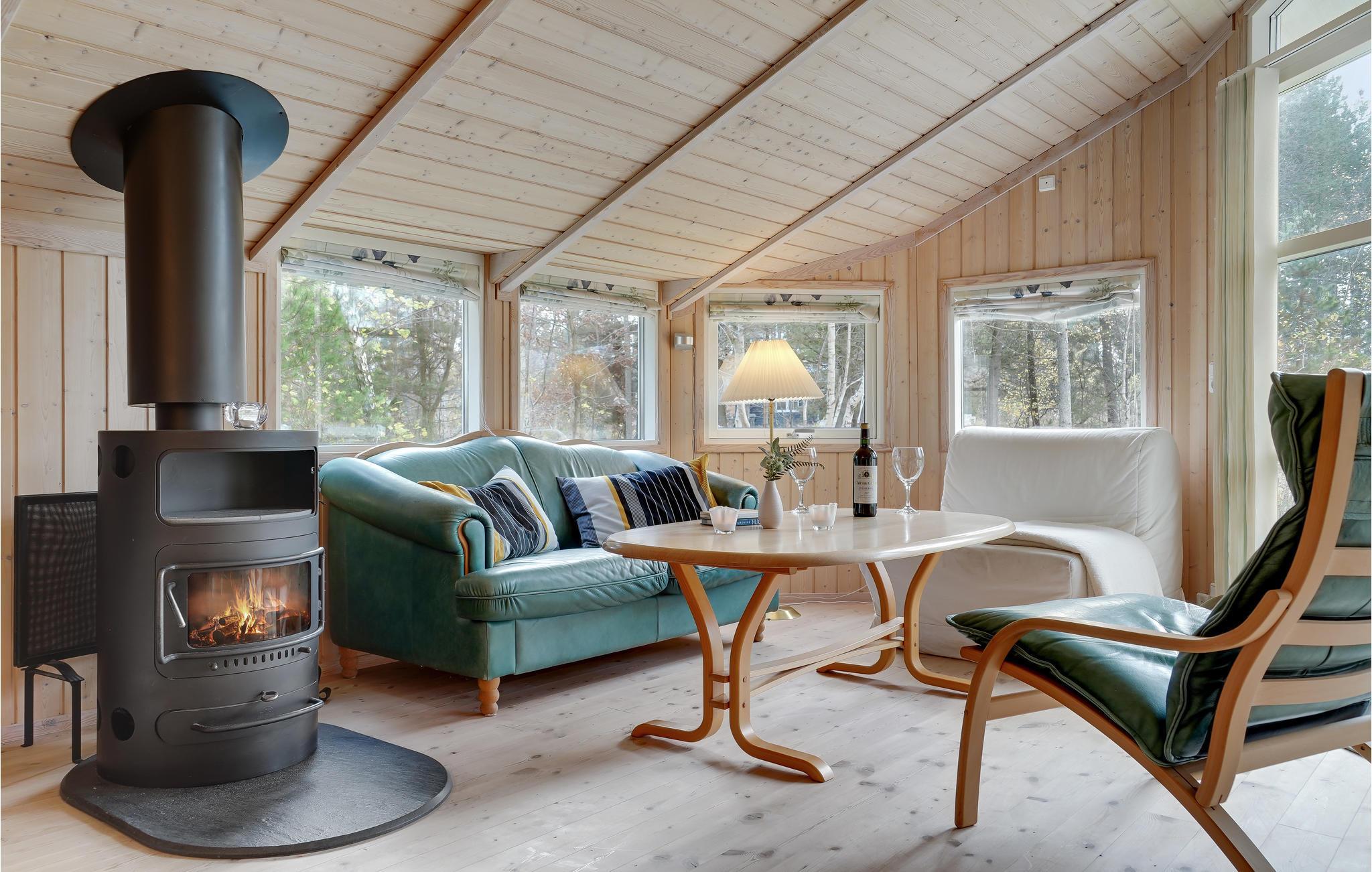 Dette sommerhus venter dig med en lys atmosfære med store vinduer, masser af træ og komfort. Saml familien i stuen til store aftener med brætspil og ild i pejsen.