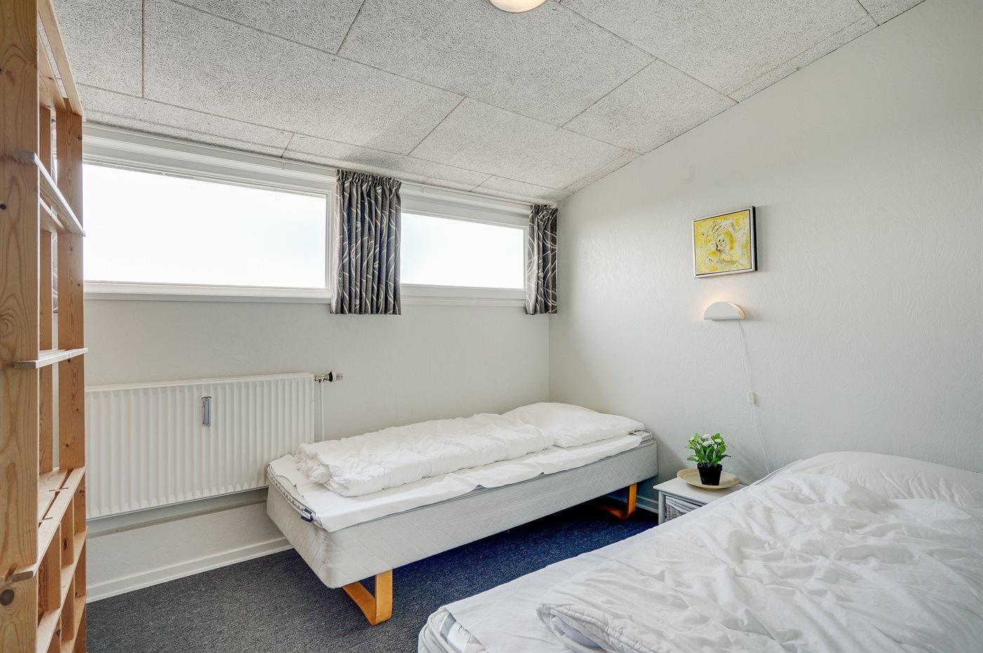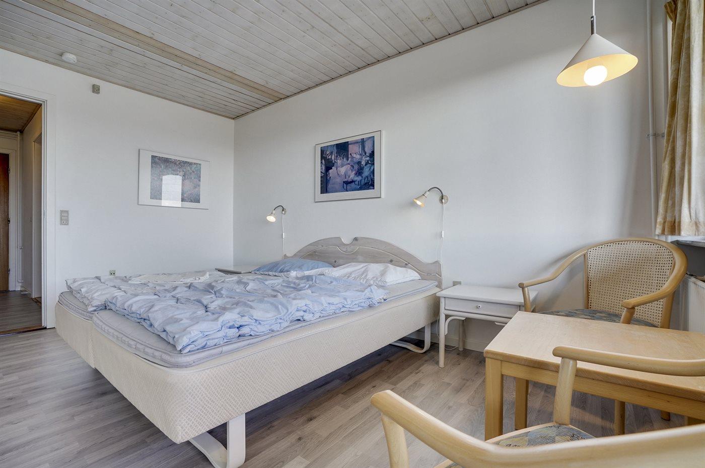 Der er i alt 16 soveværelser. Sovepladserne fordeler sig på: 22 sovepladser i dobbeltsenge. 10 sovepladser i enkeltsenge. Derudover er der 3 stk. barnesenge.