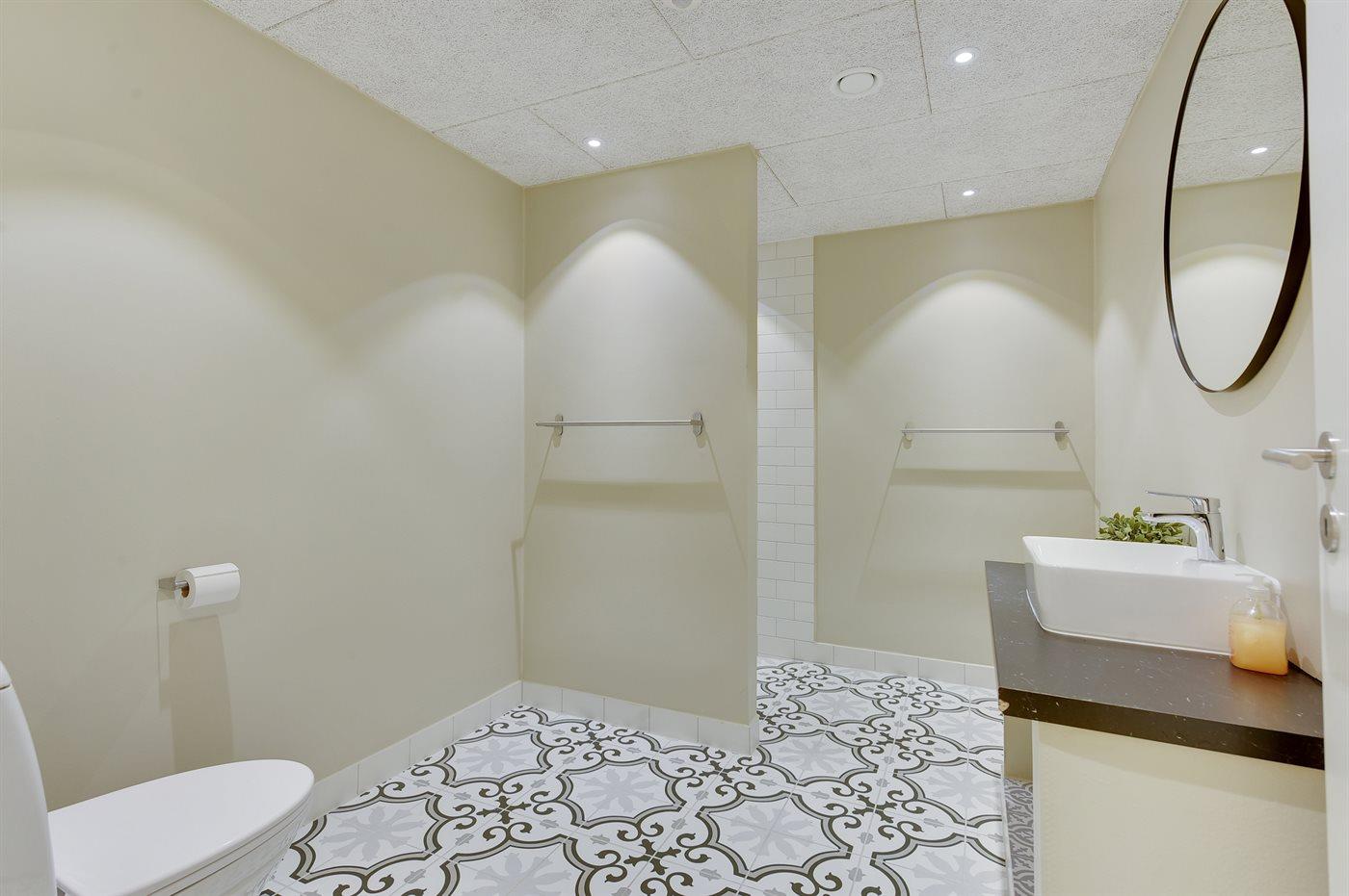 Der er 4 badeværelser med bruseniche og 5 toiletter, heraf 1 gæstetoilet. Der er gulvvarme på 4 badeværelser. Der er gulvvarme på gæstetoilettet.