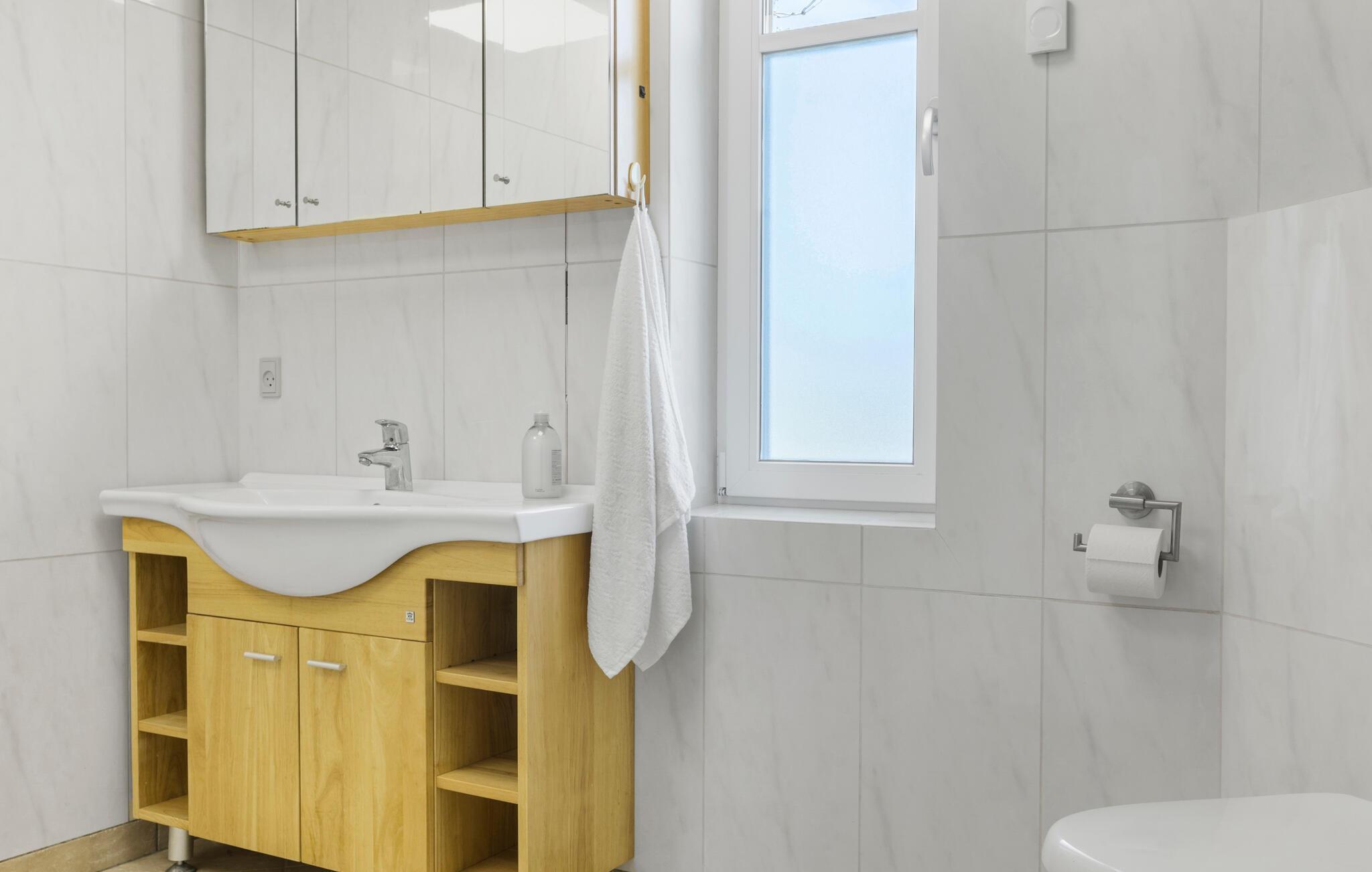 Badeværelse (nr. 1) - WC. Varmt og koldt vand. Bruser