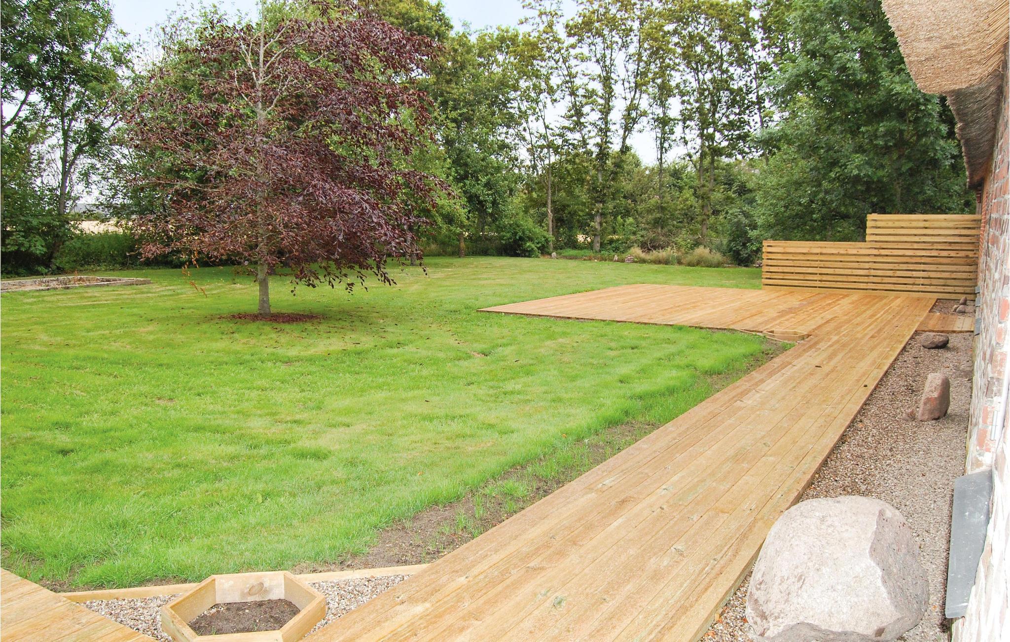 Oplev stilheden der kun brydes af fuglenes kvidren. Gå på opdagelse i havens mange små hyggekroge og smag på ribs og solbær, kirsebær og stikkelsbær - og pluk æbler og pærer fra havens gamle frugttræer. Når I vælger et ophold om vinteren, er ejendommen ikke mindre idyllisk, når frosten dugger vinduerne, og der hænger istapper ved stråtaget. Efter en frisk travetur gør det lykke, at slænge sig i sofaen foran pejsen og nyde lyden af det knitrende brænde.
