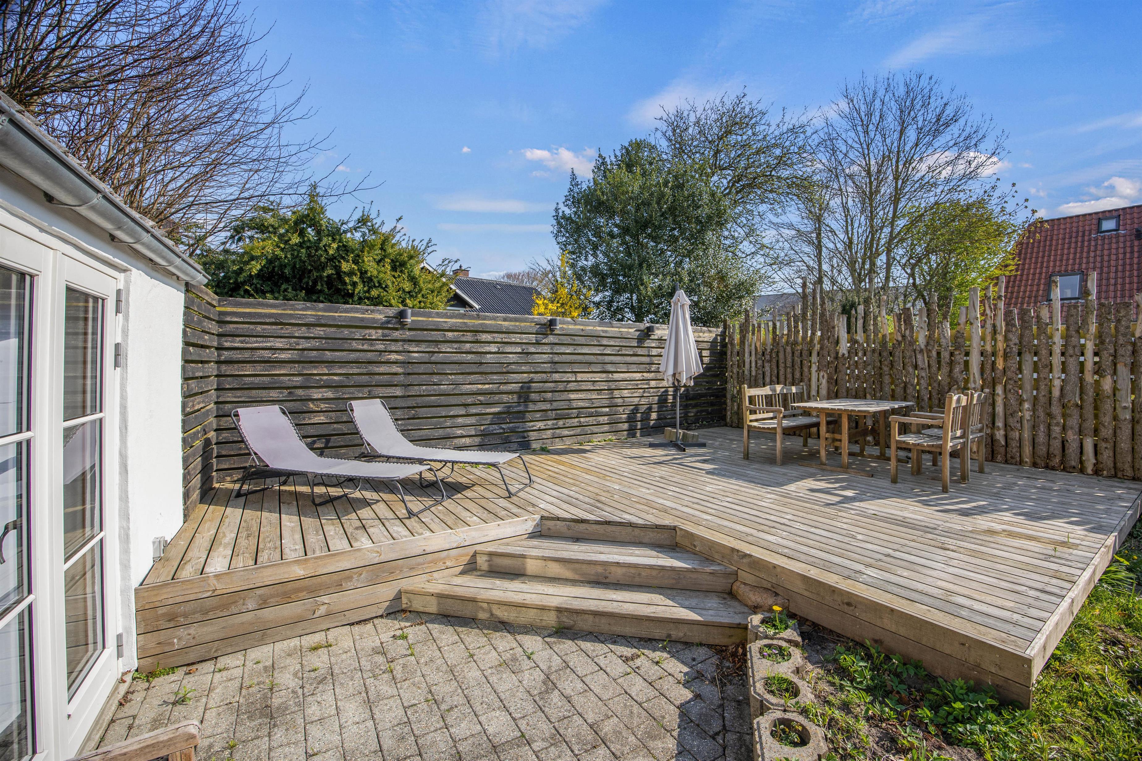Feriehuset ligger på en lille og skøn plænegrund, der er indhegnet. I kan derfor trygt lade hunden gå frit uden at bekymre jer, om den skulle gå på opdagelse i byen på egen hånd. Terrassen vil uden tvivl blive jeres yndlingssted ved feriehuset på en lun sommerdag, hvor komfortable havemøbler står klar til jer.