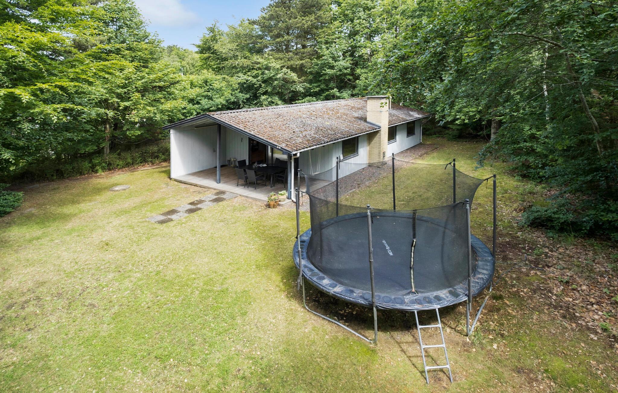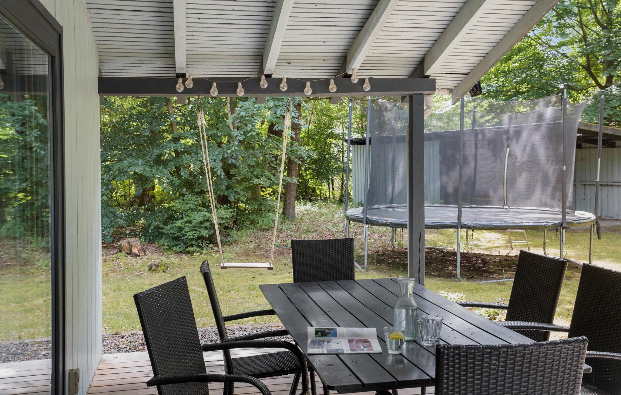 Den skønne terrasse er perfekt til hyggelige grillaftener. Der er god plads til udendørs aktiviteter på græsplænen. Snup et spil bold med familien eller læn jer tilbage og kig på børnene, mens de hopper på trampolinen.