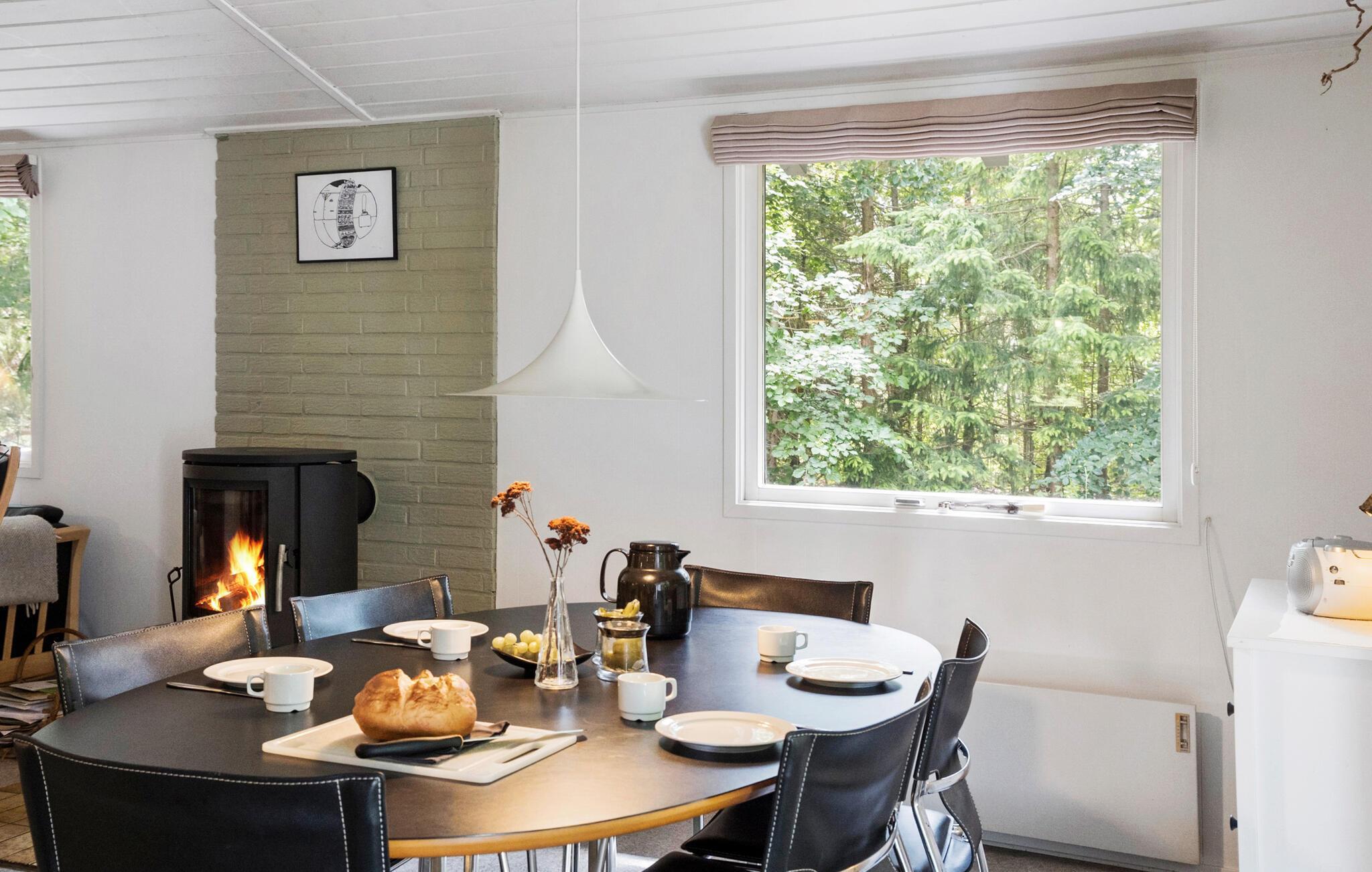 Dette sommerhus ved Sejerø Bugt er lyst, varmt og charmerende indrettet og har et dejligt udeområde. Stuen byder på et hyggeligt sofahjørne, en stilfuld stemning og masser af naturligt lys takket være de store vinduespartier, som næsten får ude og inde til at smelte sammen. Den åbne spiseplads støder direkte op til det moderne køkken, så her forenes eftermiddagshyggen med madlavningen og de rolige måltider. Den fredfyldte atmosfære giver jer god mulighed for at slappe af efter dagens program.