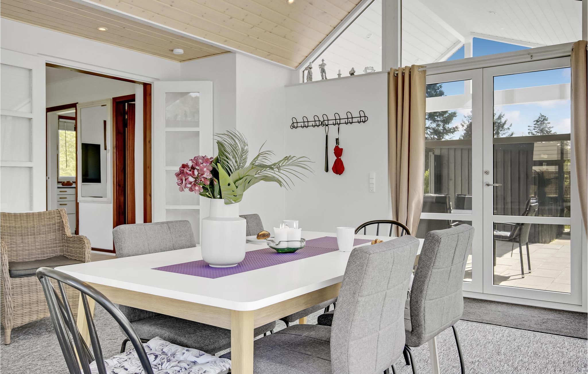 Tilbring en dejlig ferie i dette indbydende sommerhus, der er komfortabelt indrettet og skaber ideelle rammer for et ophold, som I vil huske med glæde i lang tid. Store vinduer slipper meget dagslys ind i huset og giver jer en vidunderlig udsigt over naturen.