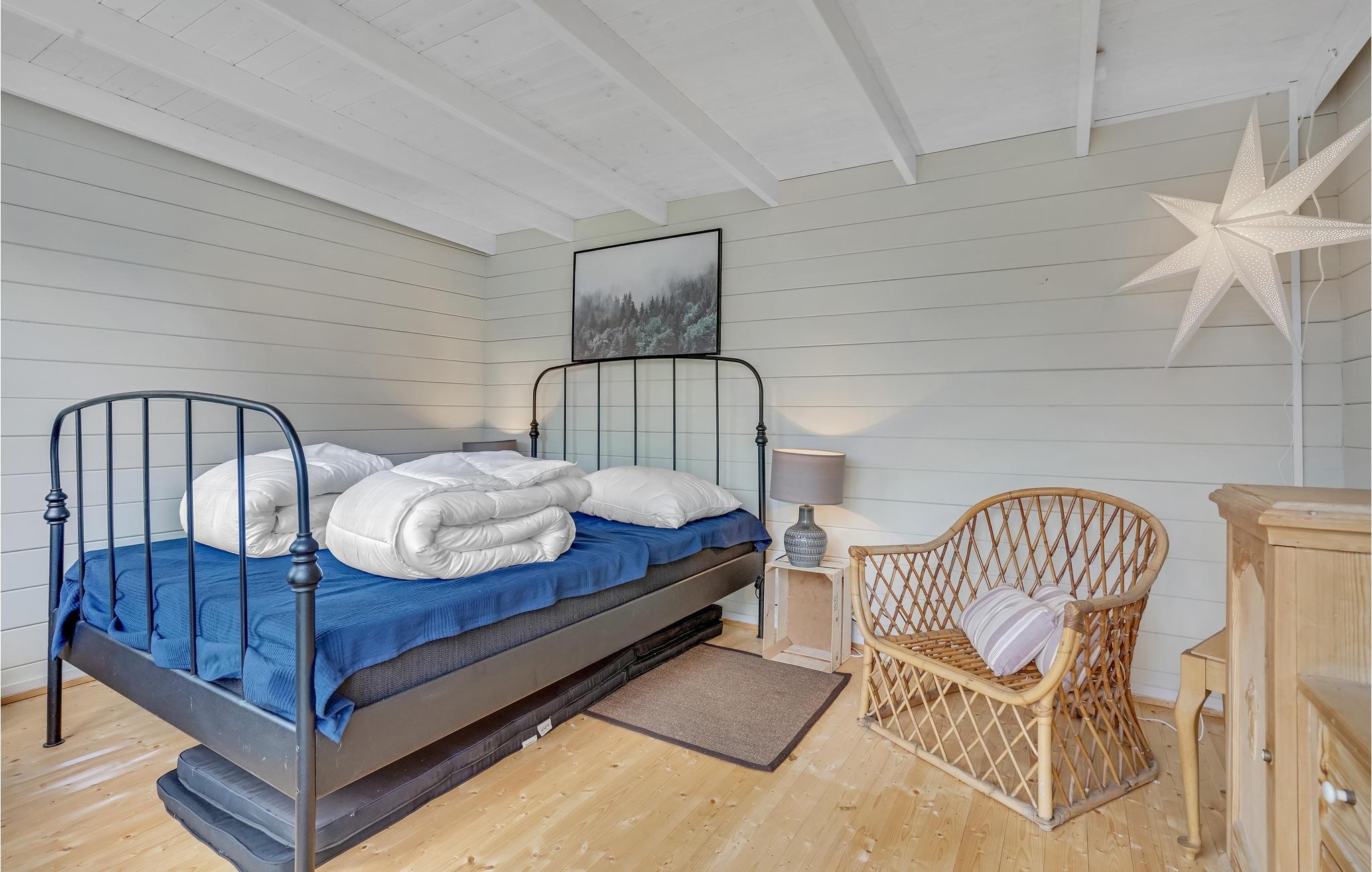 Dette hyggelige sommerhus byder op til seks gæster velkommen med sine tre soveværelser (et af dem i et anneks), et badeværelse, en stue og et køkken. På den store grund finder I masser af plads til at slappe af og lege. Der er spil til børn, en bålplads og en grill til hyggelige grillaftener. Havemøbler er tilgængelige, og på terrasserne kan I spise morgenmad og senere afslutte dagen med et glas vin.